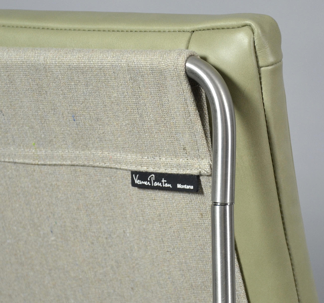Design: Verner Panton fra 1955 Producent: Montana Model: Bachelor Stel i stål, beklædning i 100% hør.