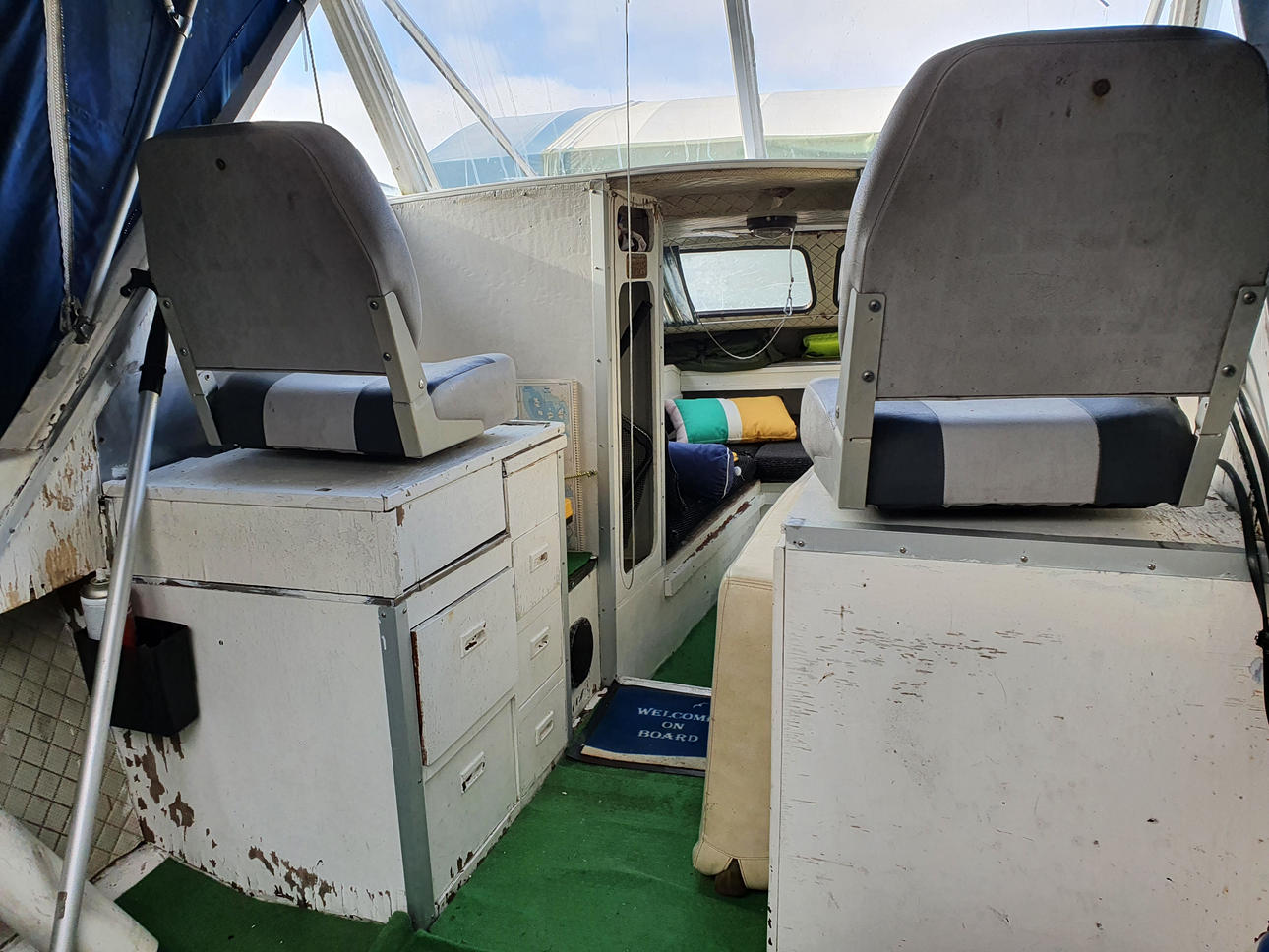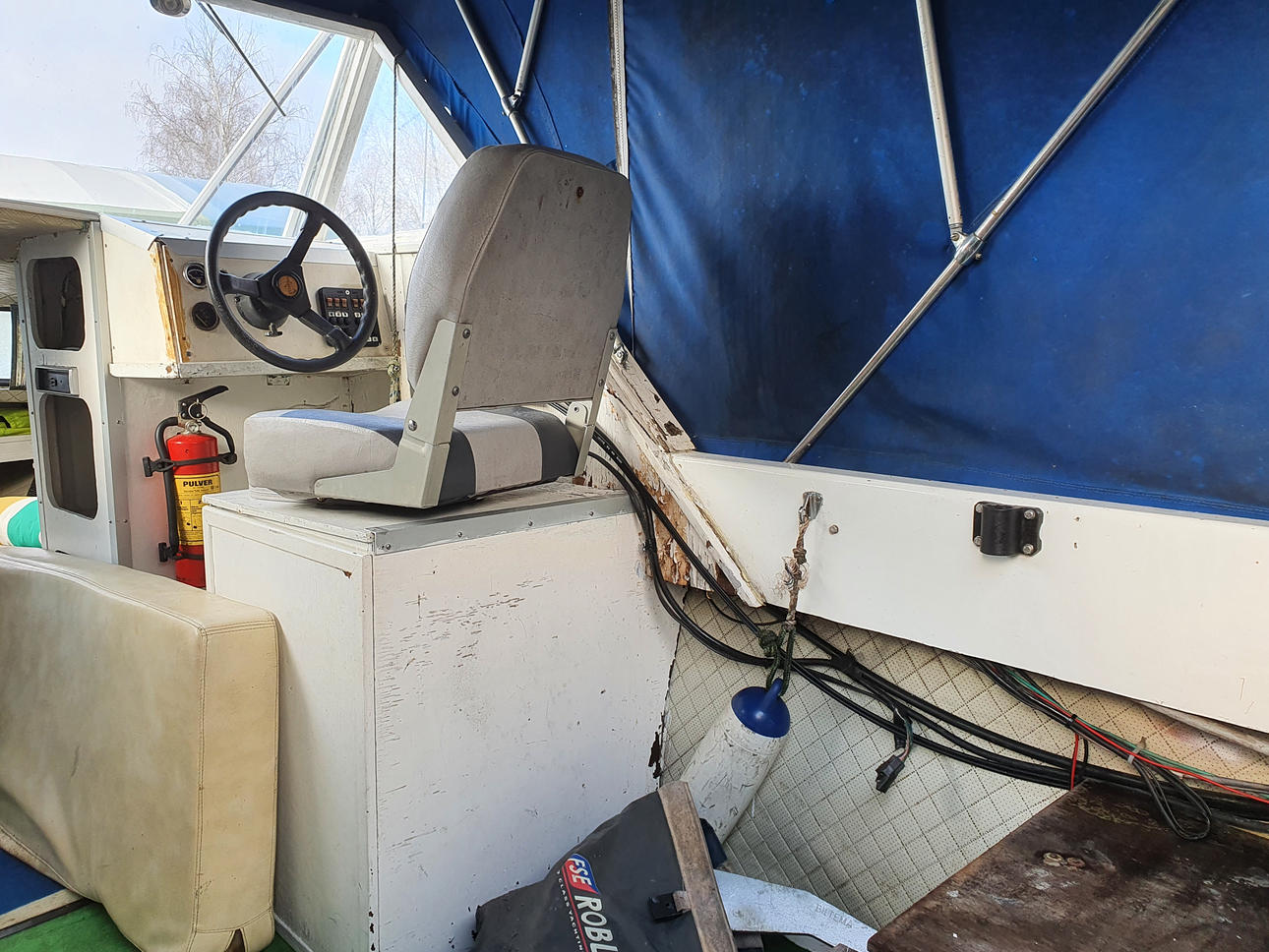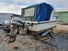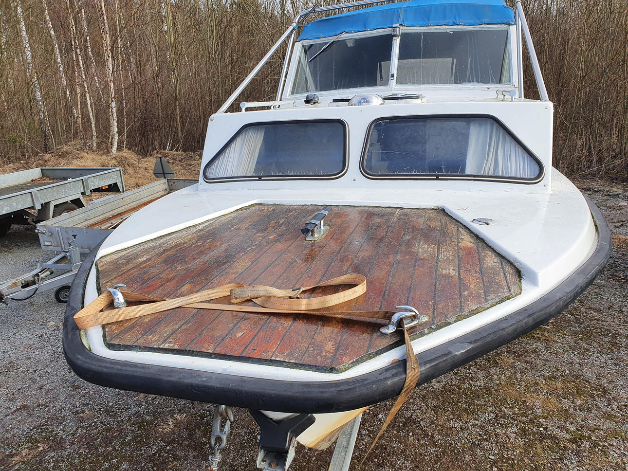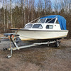 Båd: længde 6 m, bredde 2 m. Overdækket med baldakin, to sovepladser.