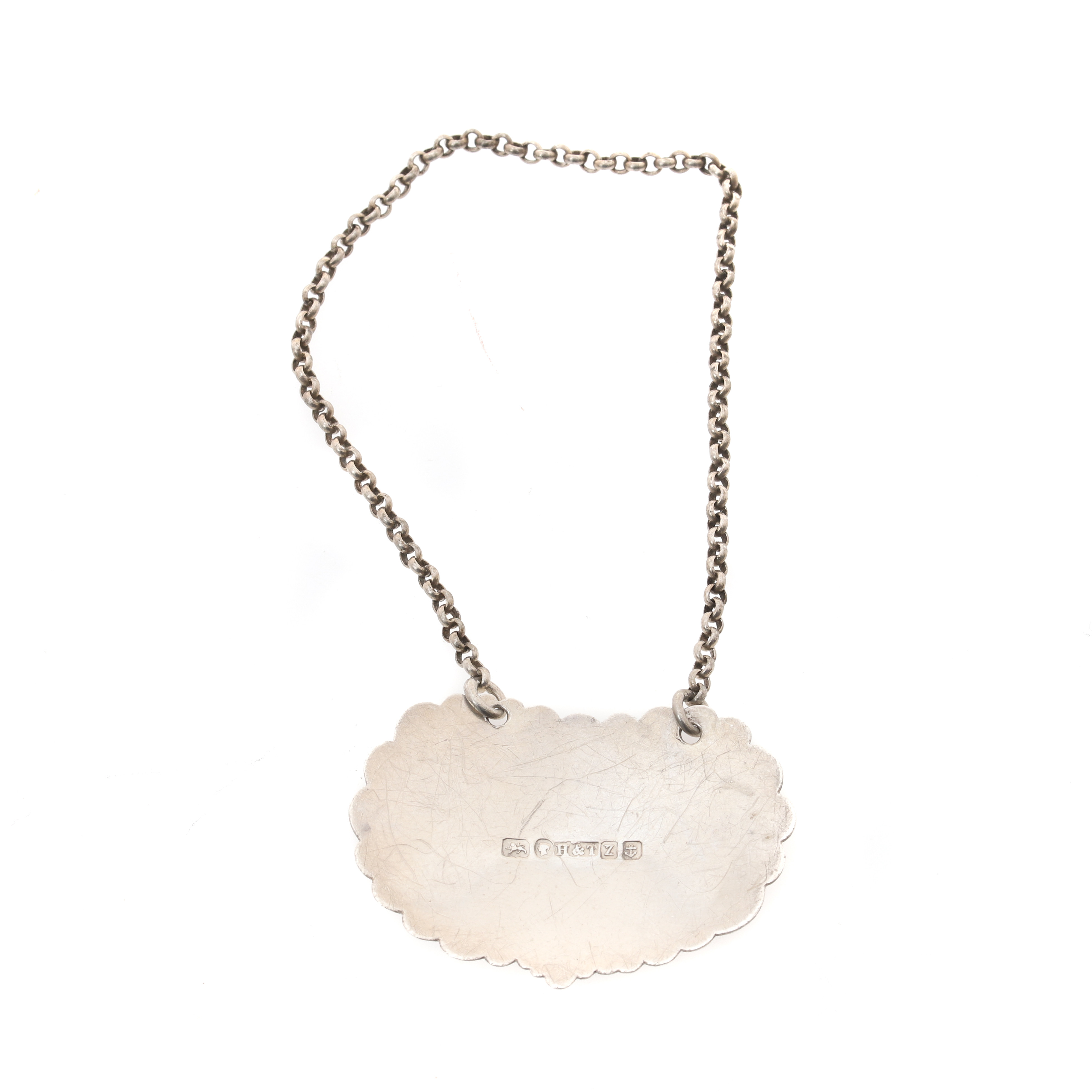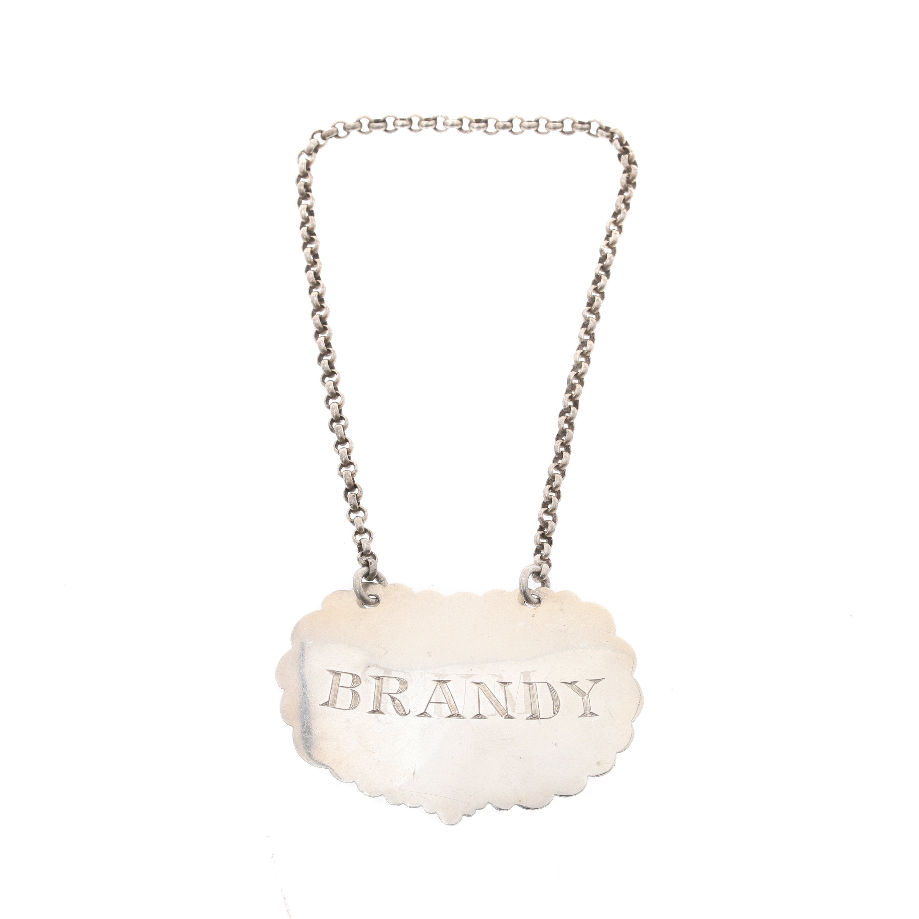 2126862. EN VICTORIANSK SØLVSKYDD FLASKEBILLET 'BRANDY'.