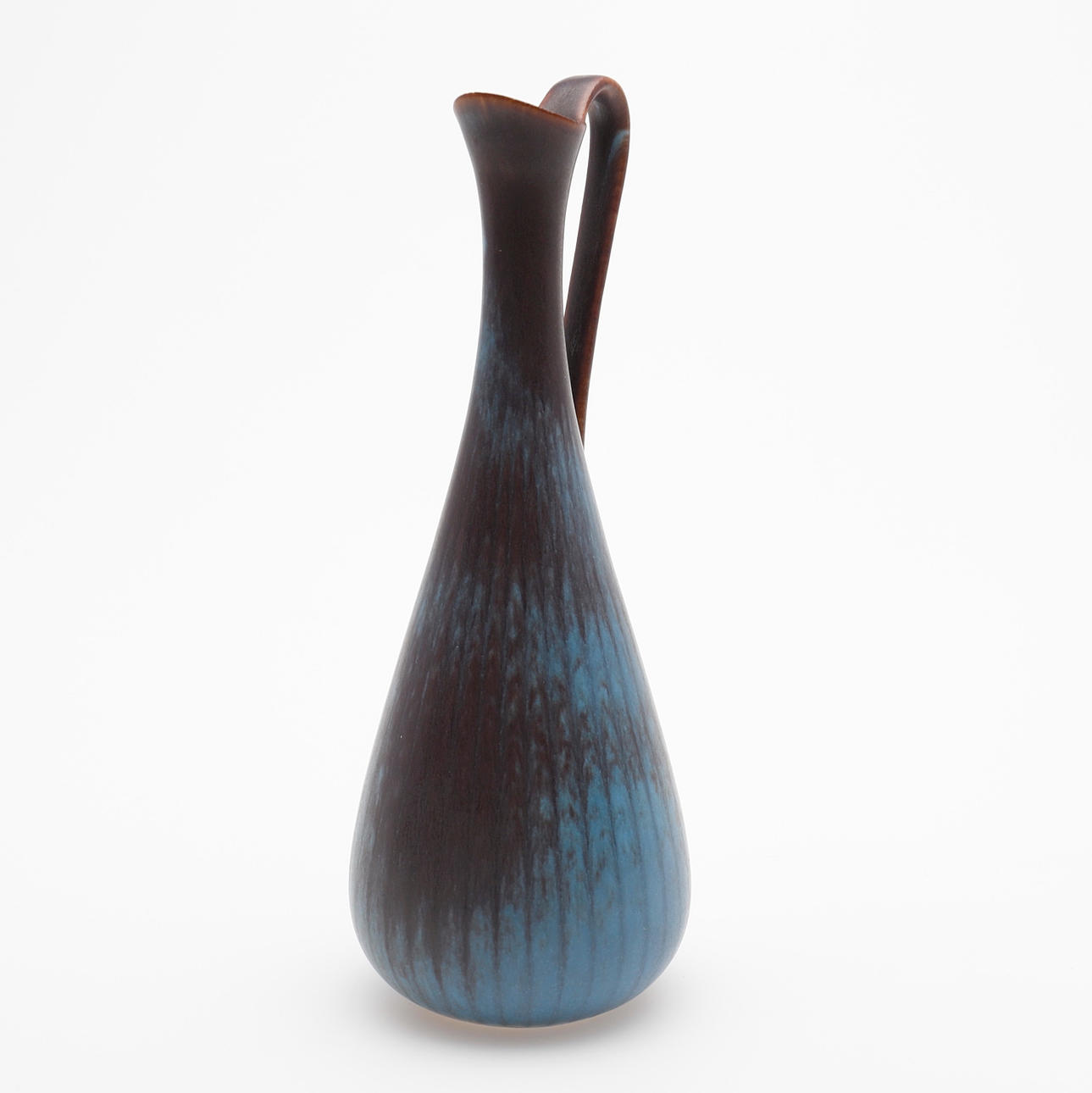 Glaseret stentøj i blå og brun, højde 20 cm.