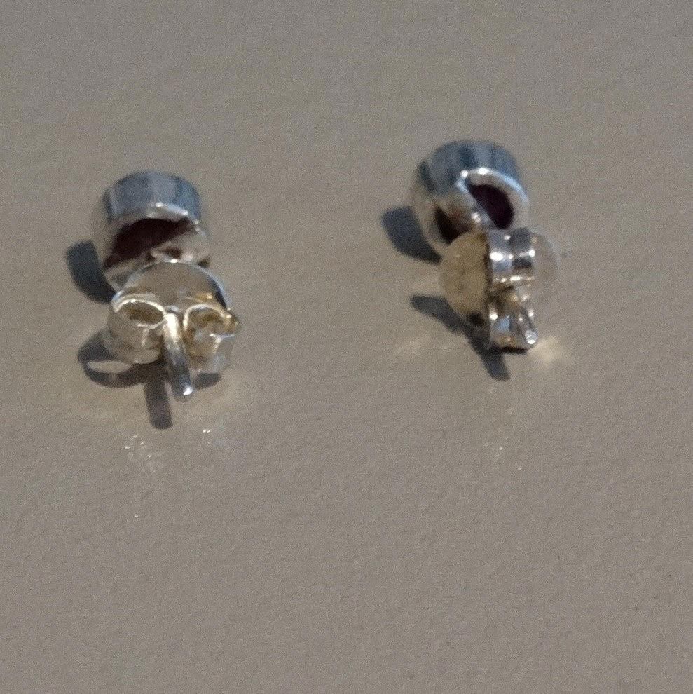 Originale rubin ædelstens ørestikker, fra Sri Lanka (Ceylon), i 925 sølvindfatning, to rubiner.