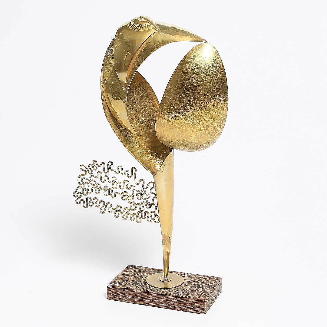 213039. TOR GUNDERSEN. Skulptur, messing og træ, "Phoenix".