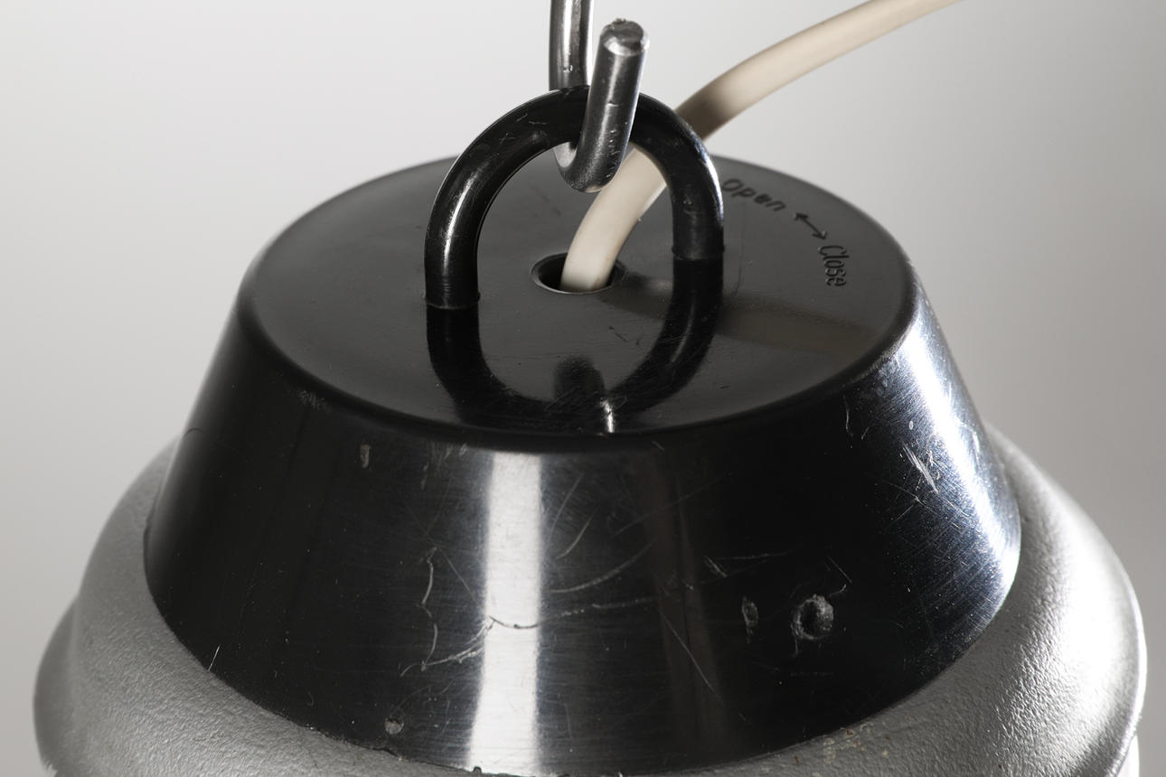 Pendel model Bulb Bulb. Udkast til 1960'erne. Plast, hvid gennemskinnelig, sølv og sort. H.60, D 34 cm. Udpeget.