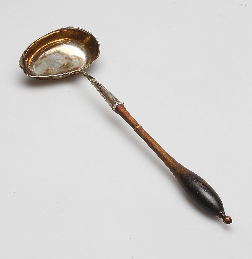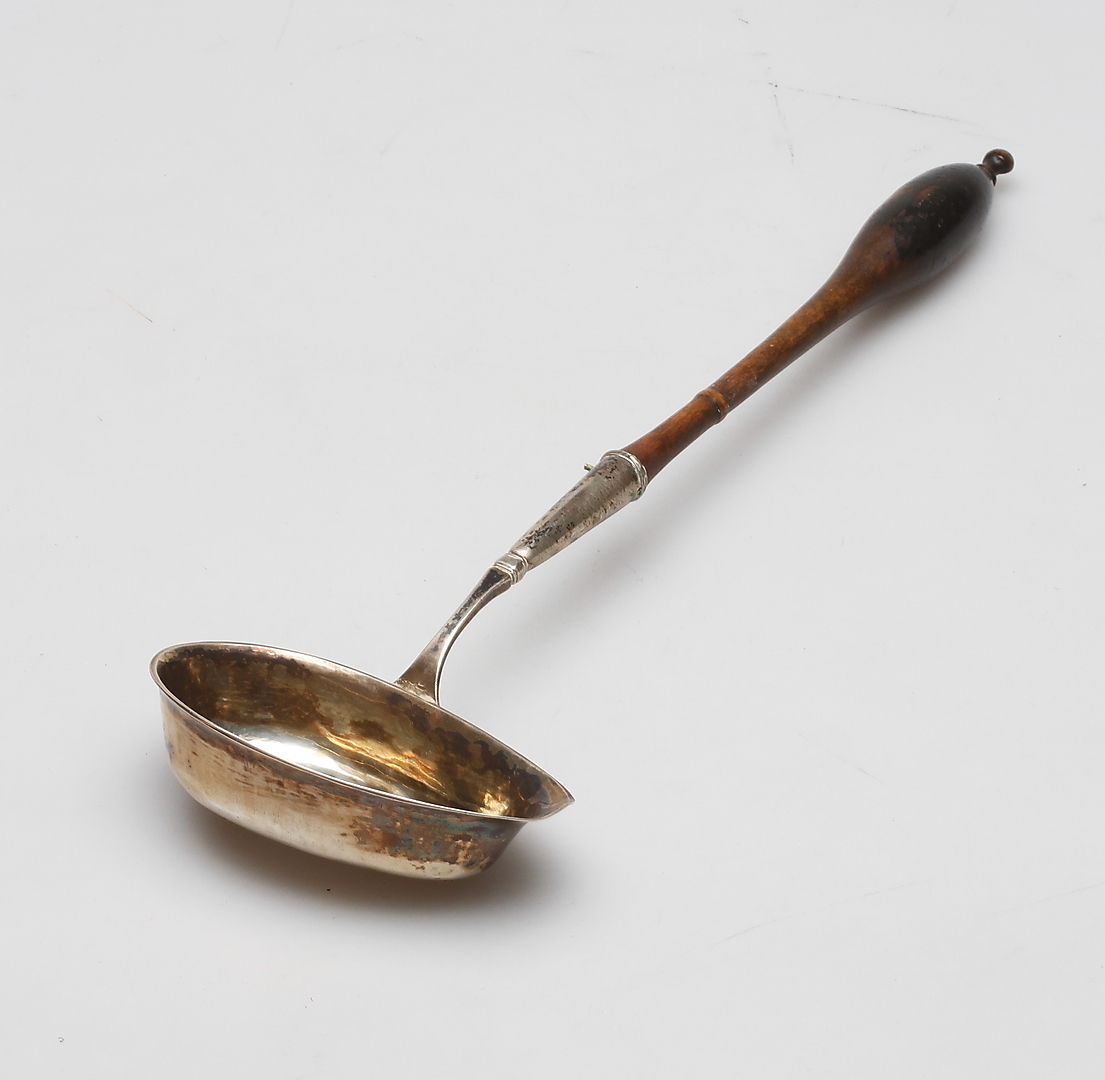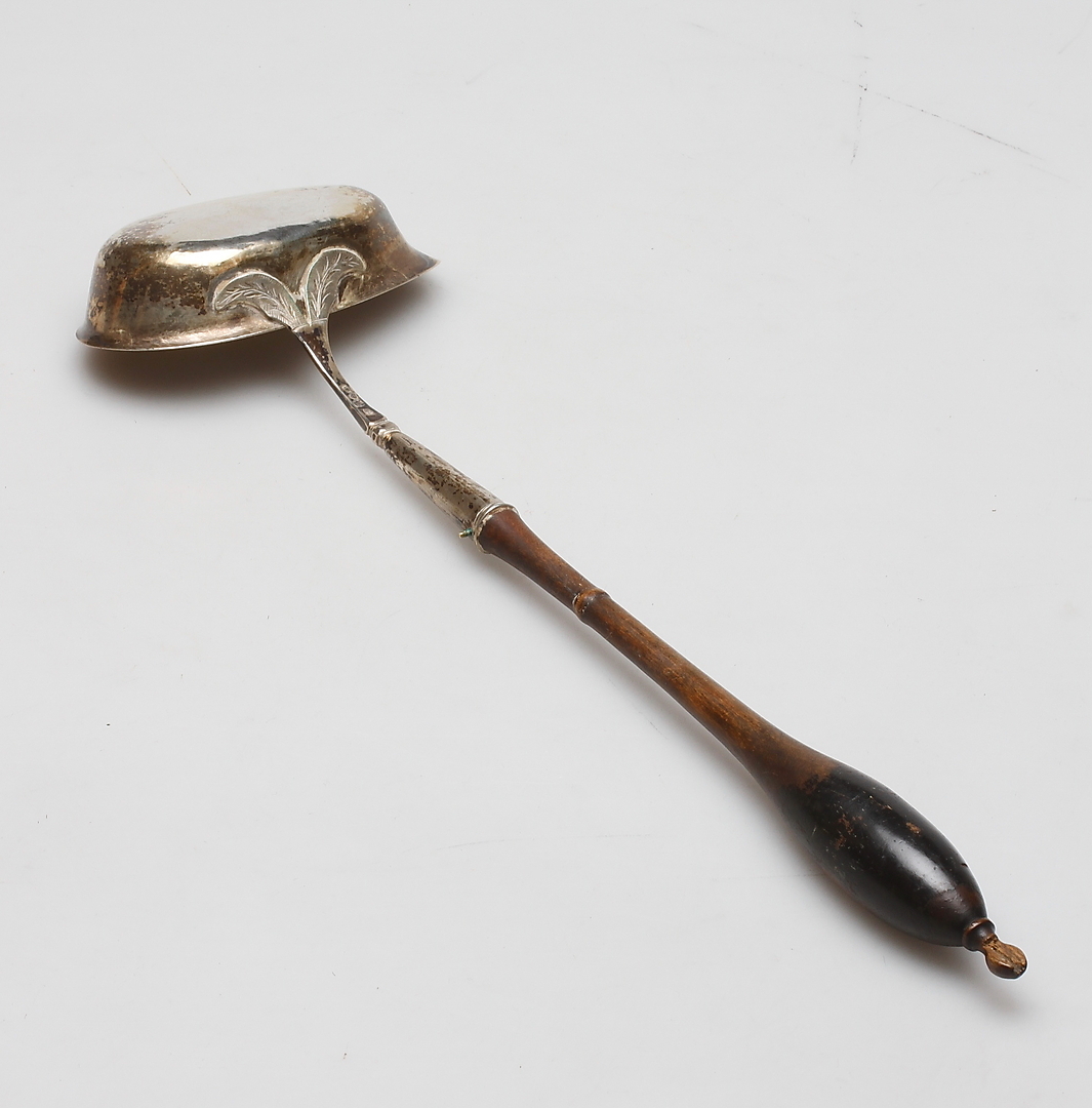 213425. SOPPSLEV, sølv med træhåndtag, første halvdel af 1800-tallet.