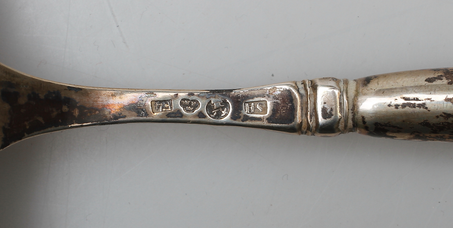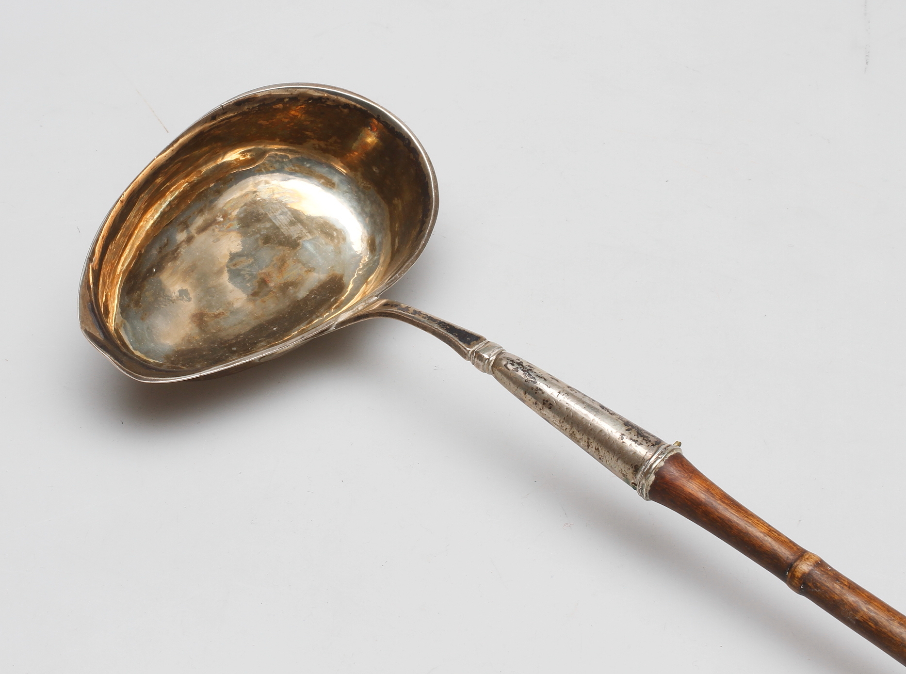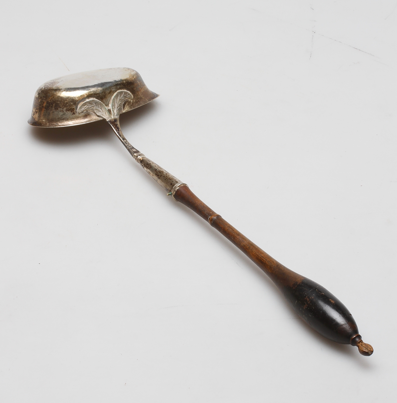213425. SOPPSLEV, sølv med træhåndtag, første halvdel af 1800-tallet.
