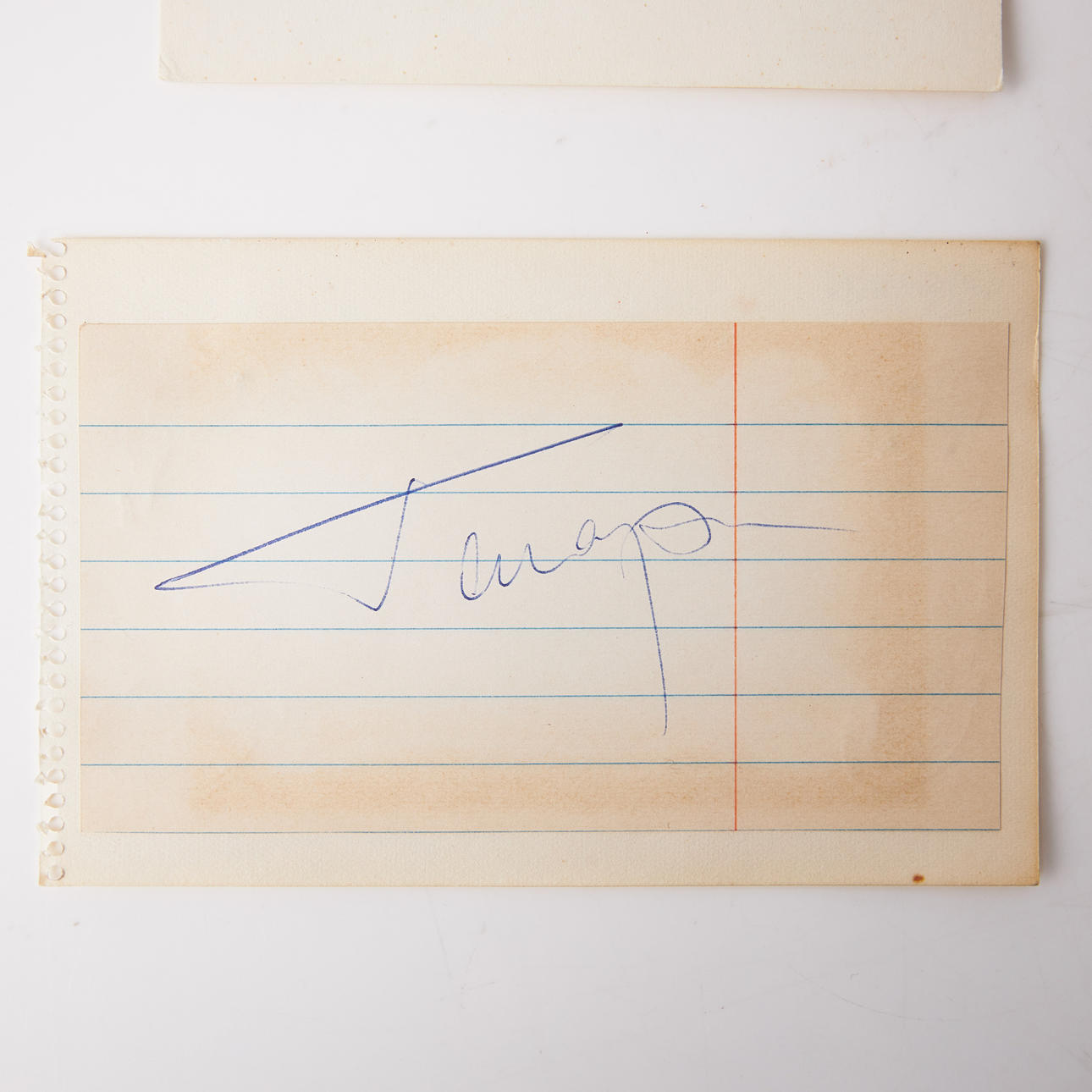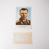 GAGARIN.. Autograf på papir, ca 63x115 mm., klistret på pap. Sammen med farvet russisk postkort (portræt af Gagarin).