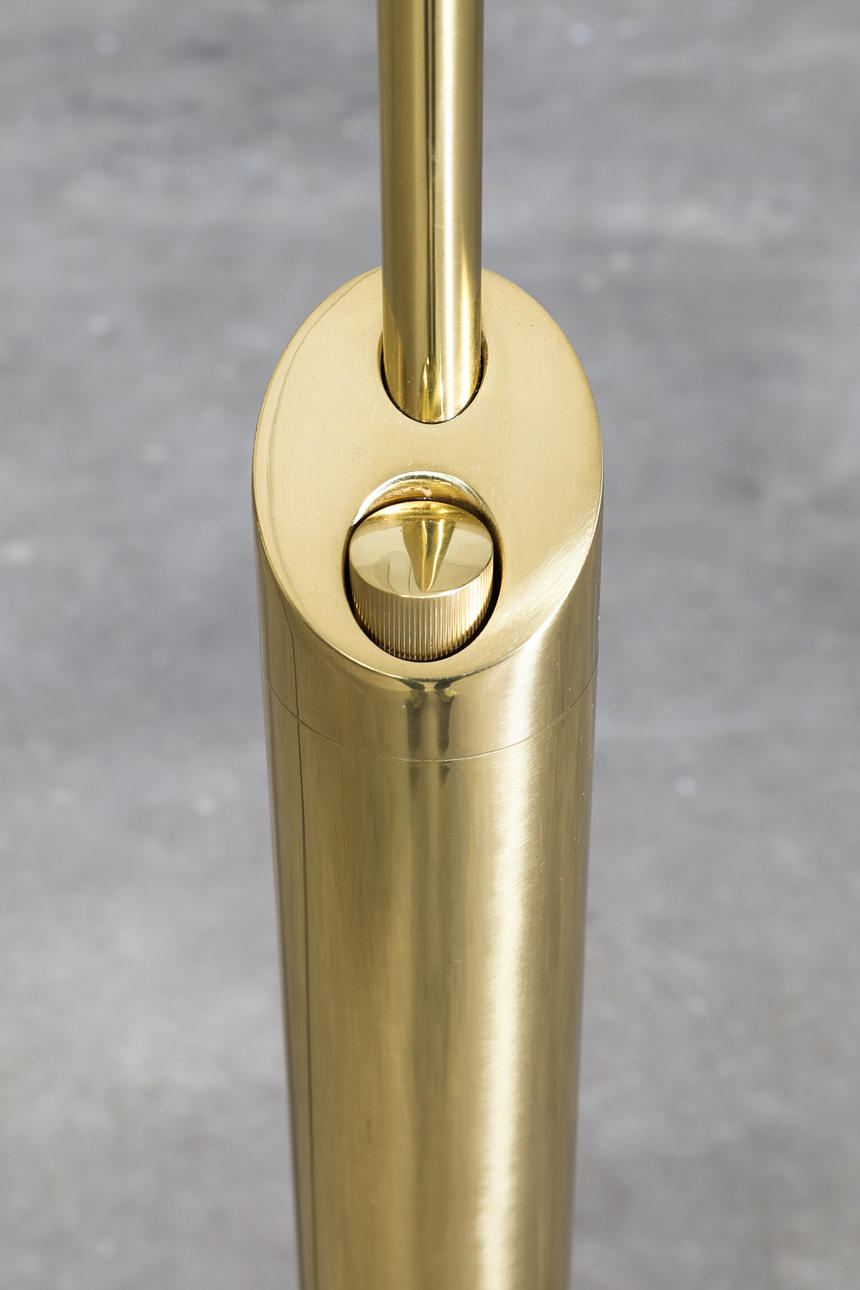 Gulvlampe model Yon. Justerbar messingkonstruktion, udstyret med lysdæmper. 125x21x70 cm.