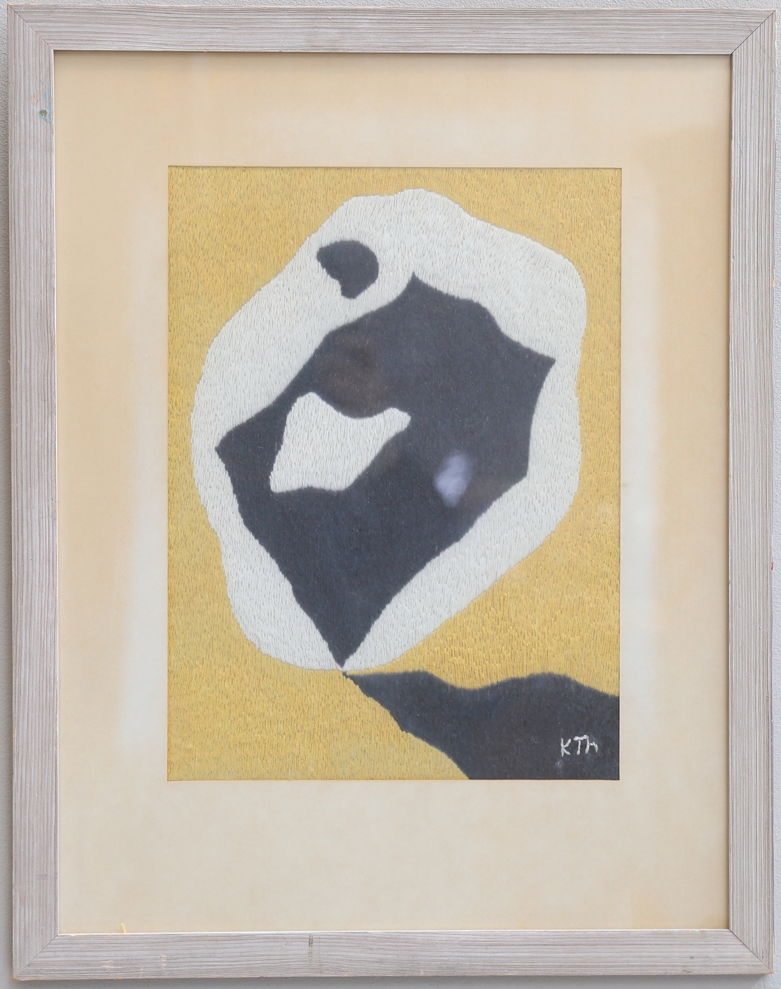 2137785. OIDENTIFIERAD KONSTNÄR. Broderi, Abstrakte former, signeret KTH.