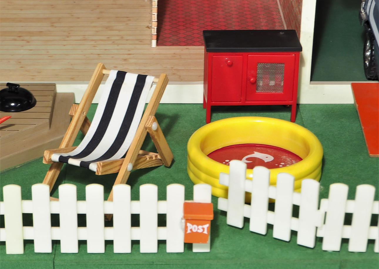 Altan, Lundby bil, hegn, liggestole, grillpool og kaninbur.