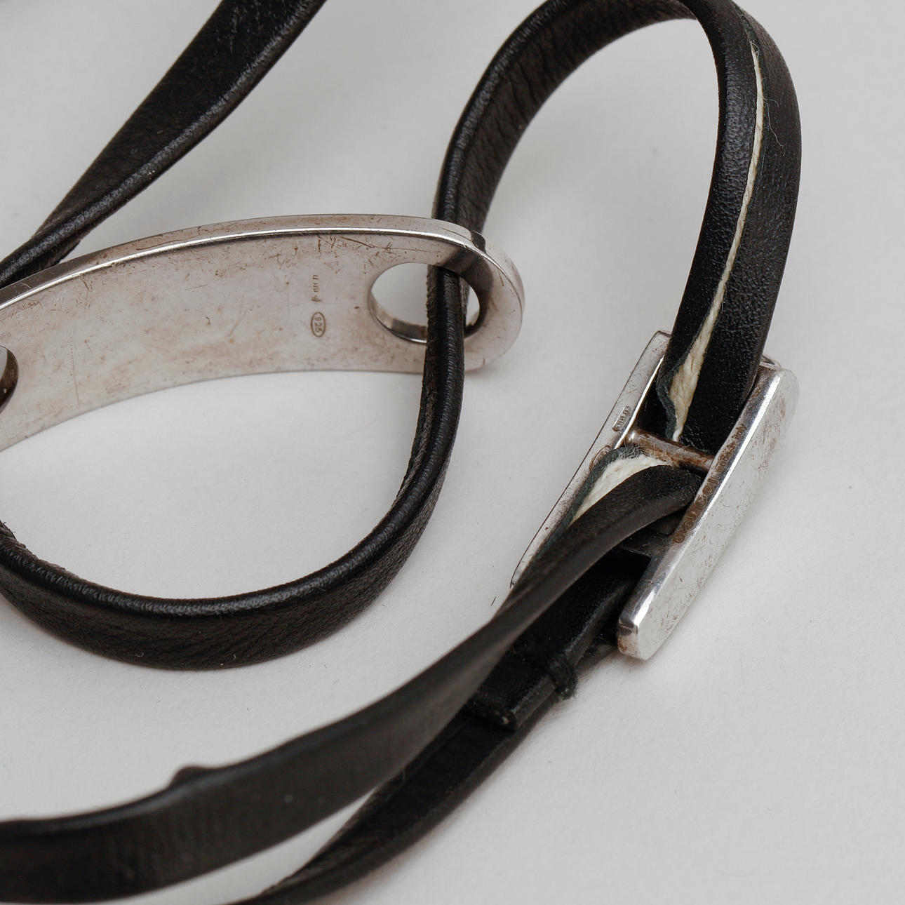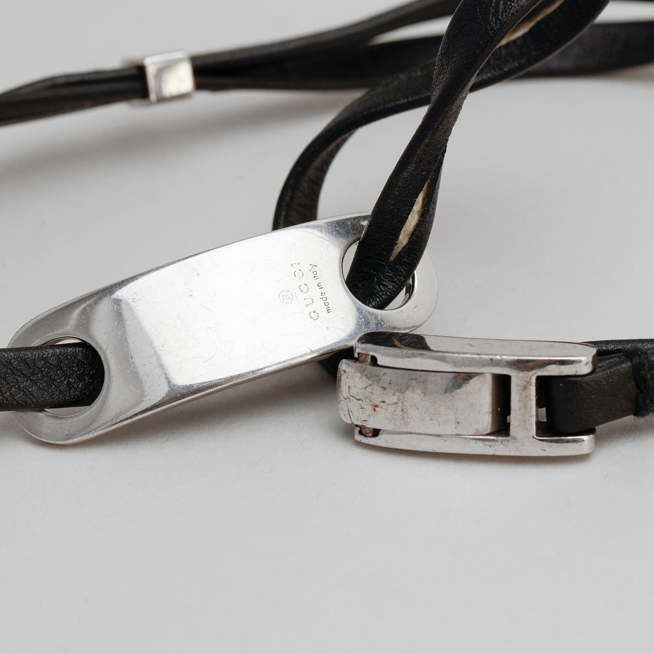 2138491. ARMBÅND, læder og sølv, Gucci.