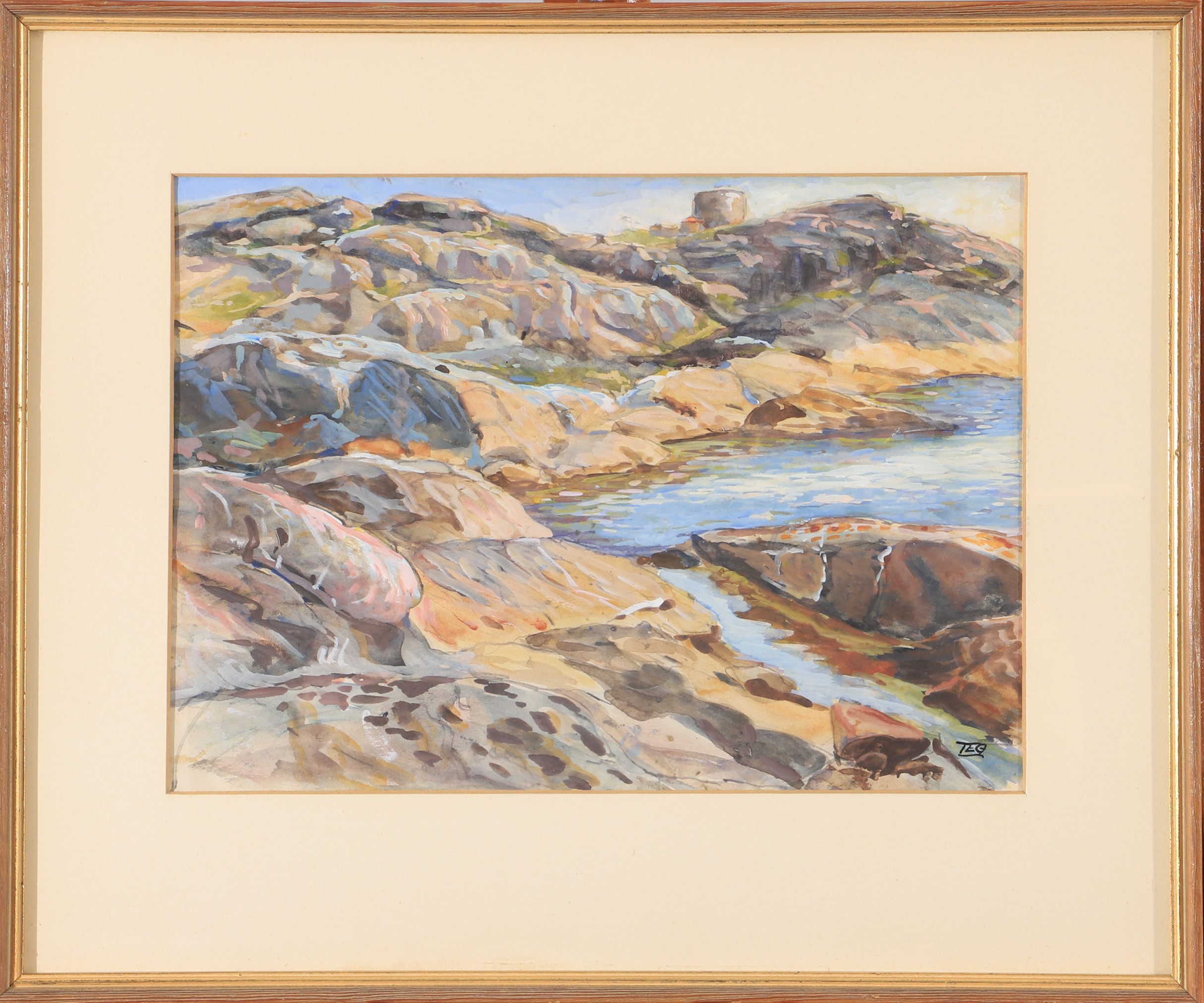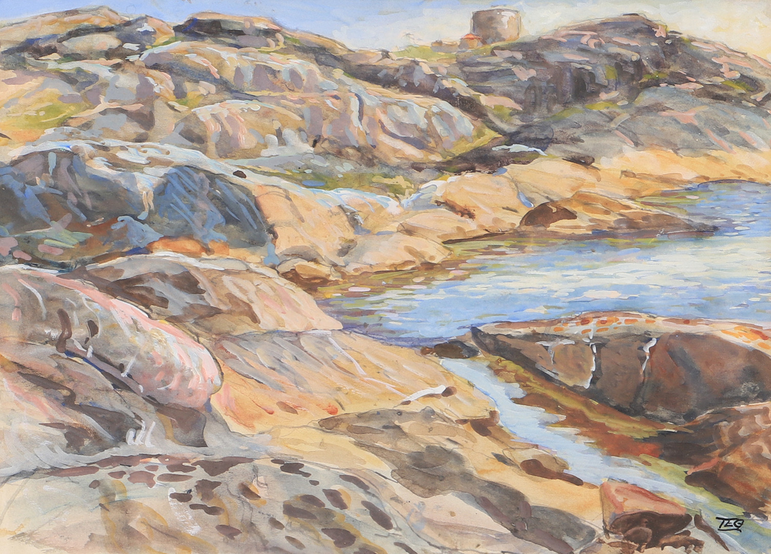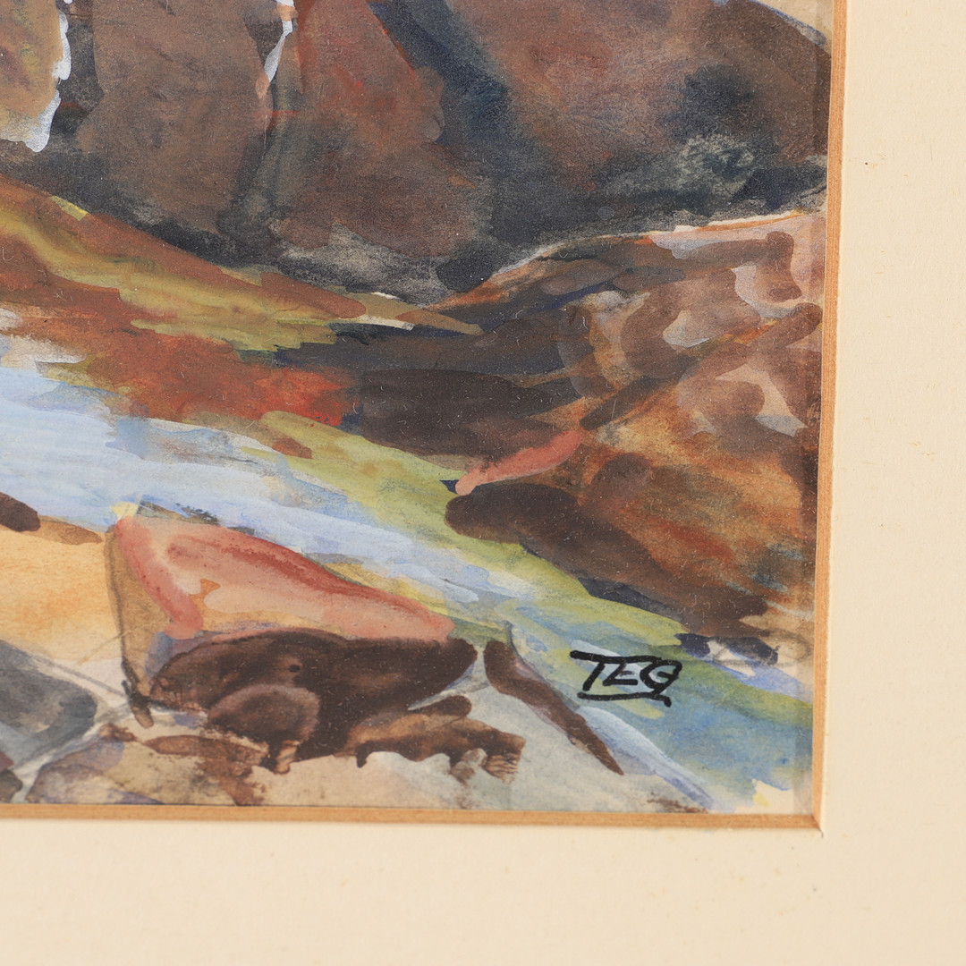 2140471. OIDENTIFIERAD KONSTNÄR. Kystparti, akvarel, signeret TEG.