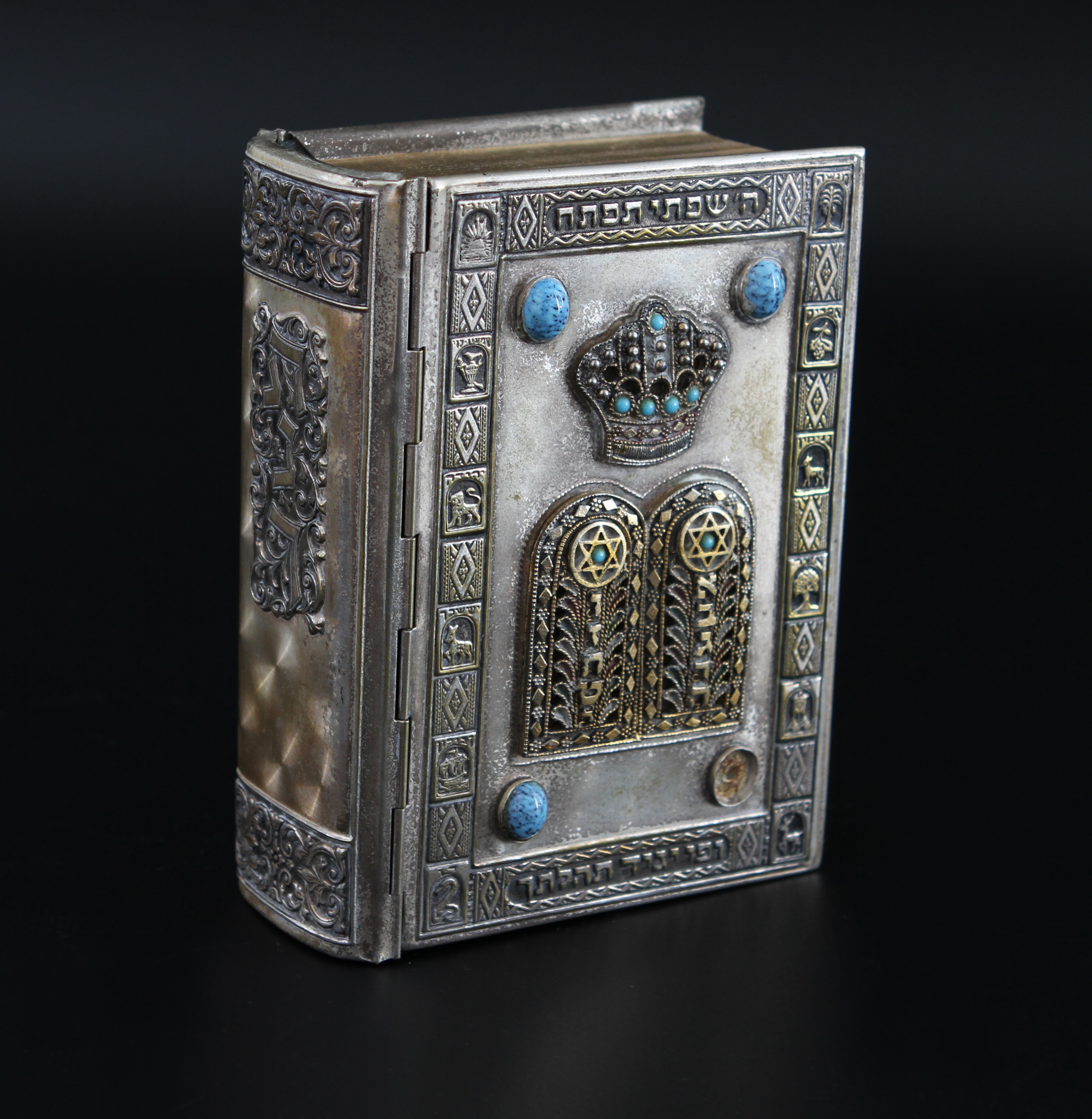 21425. JUDEICA. De hellige skrifter i metalkasse.
