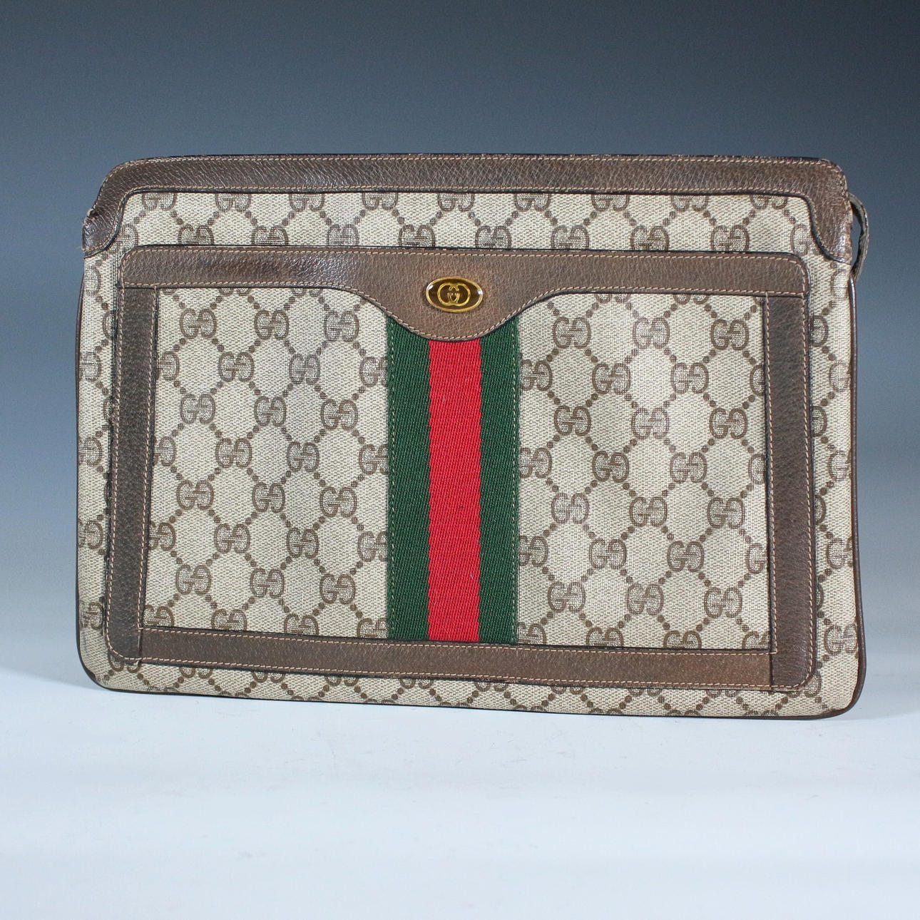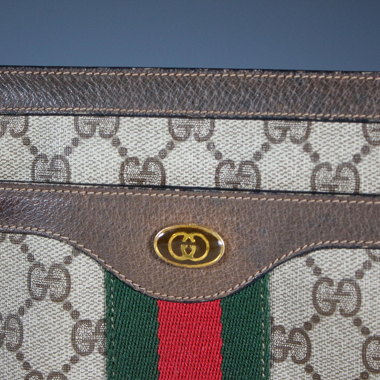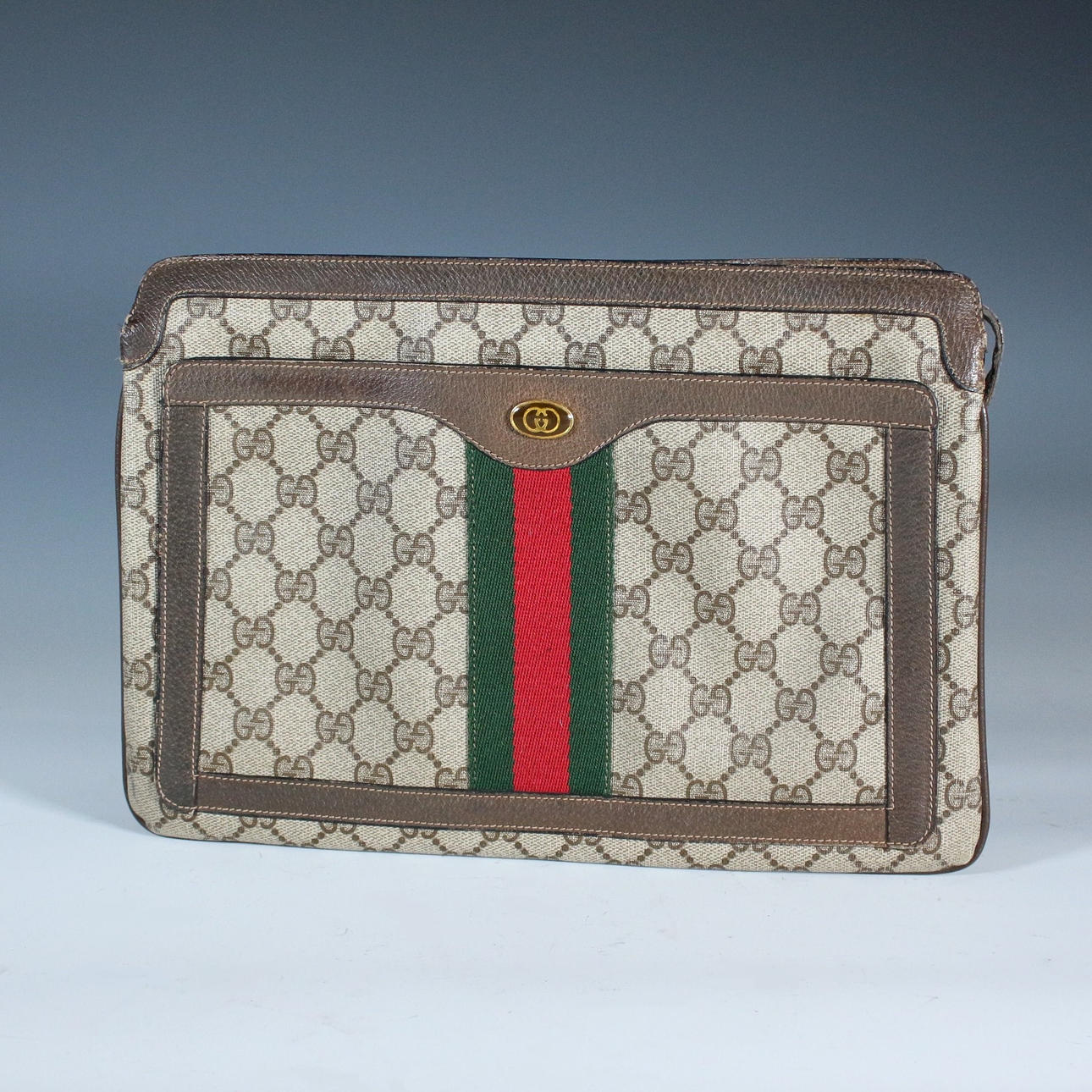 Gucci, Italien, taske/skuldertaske 'Accessory Collection', canvas med monogram, brun læderkant, mærket og nummereret på indersiden: 'GUCCI Accessory Collection Made in Italy' og '14 02 013', mål ca.Mål: 22x31x6 cm.