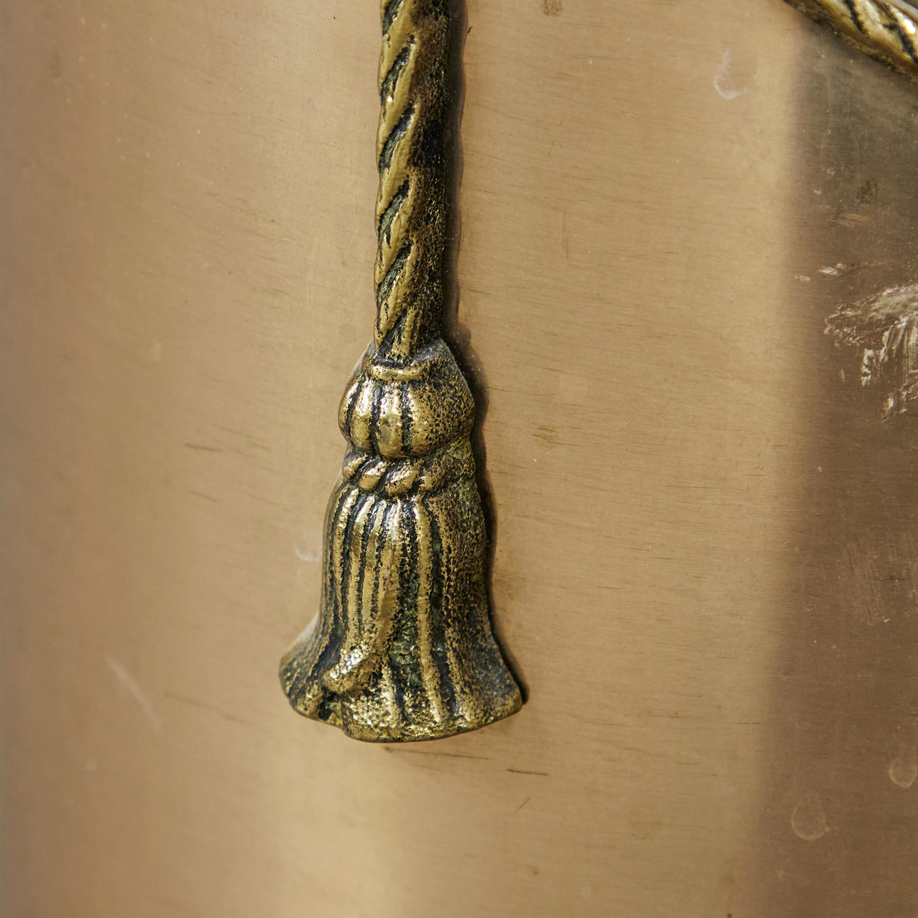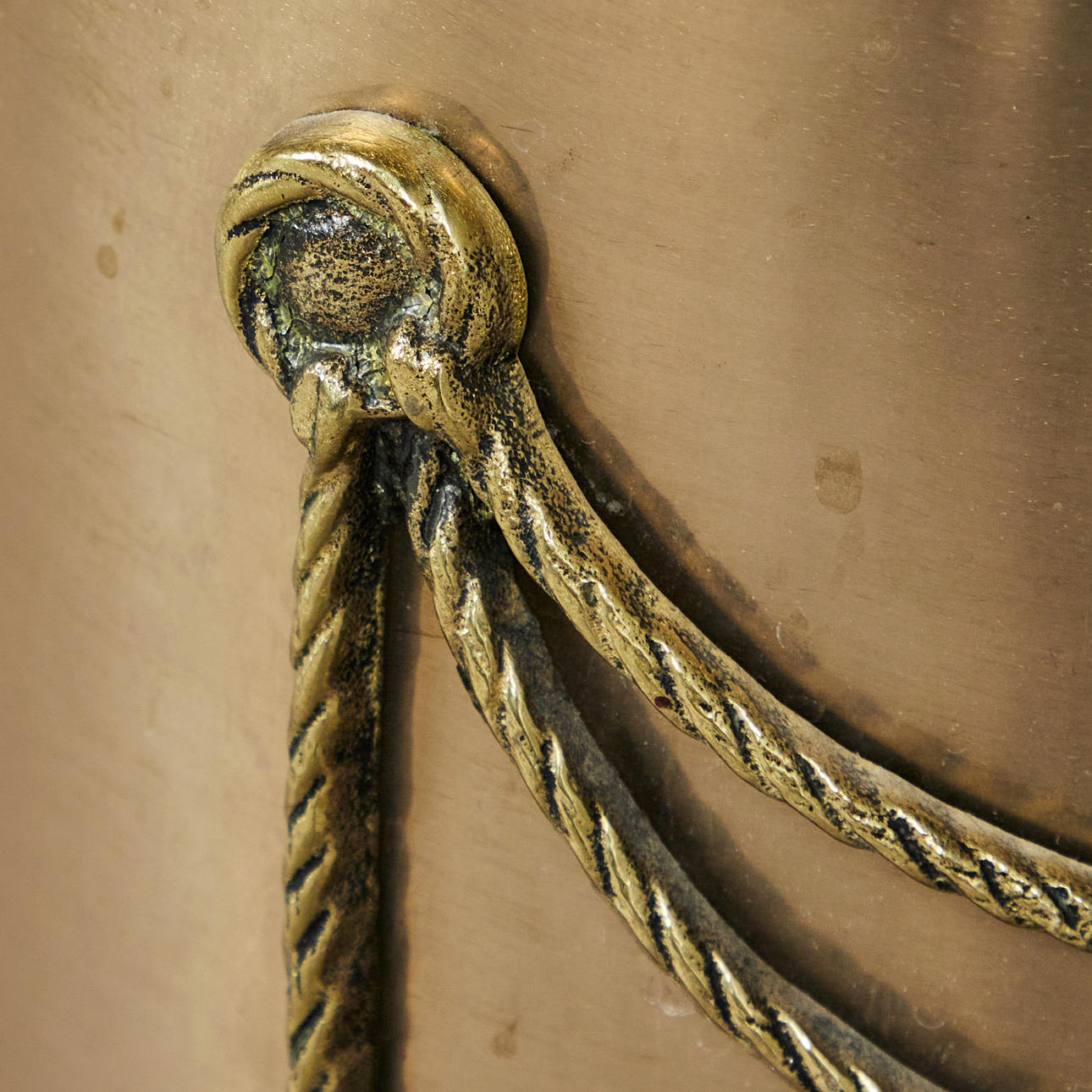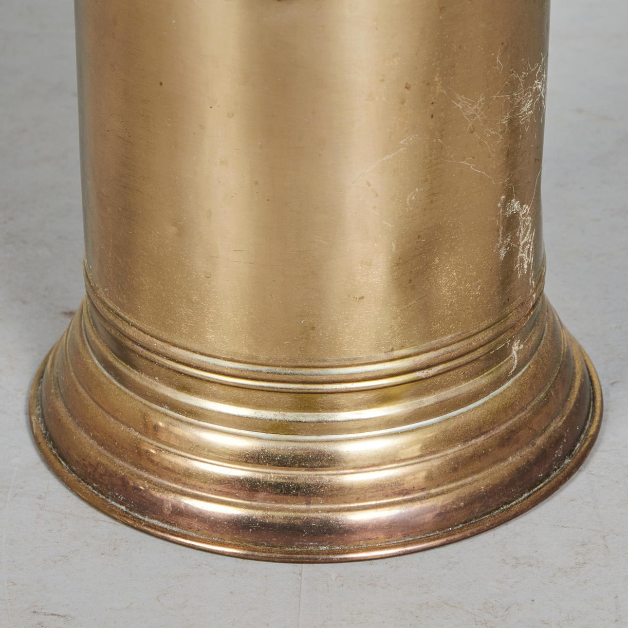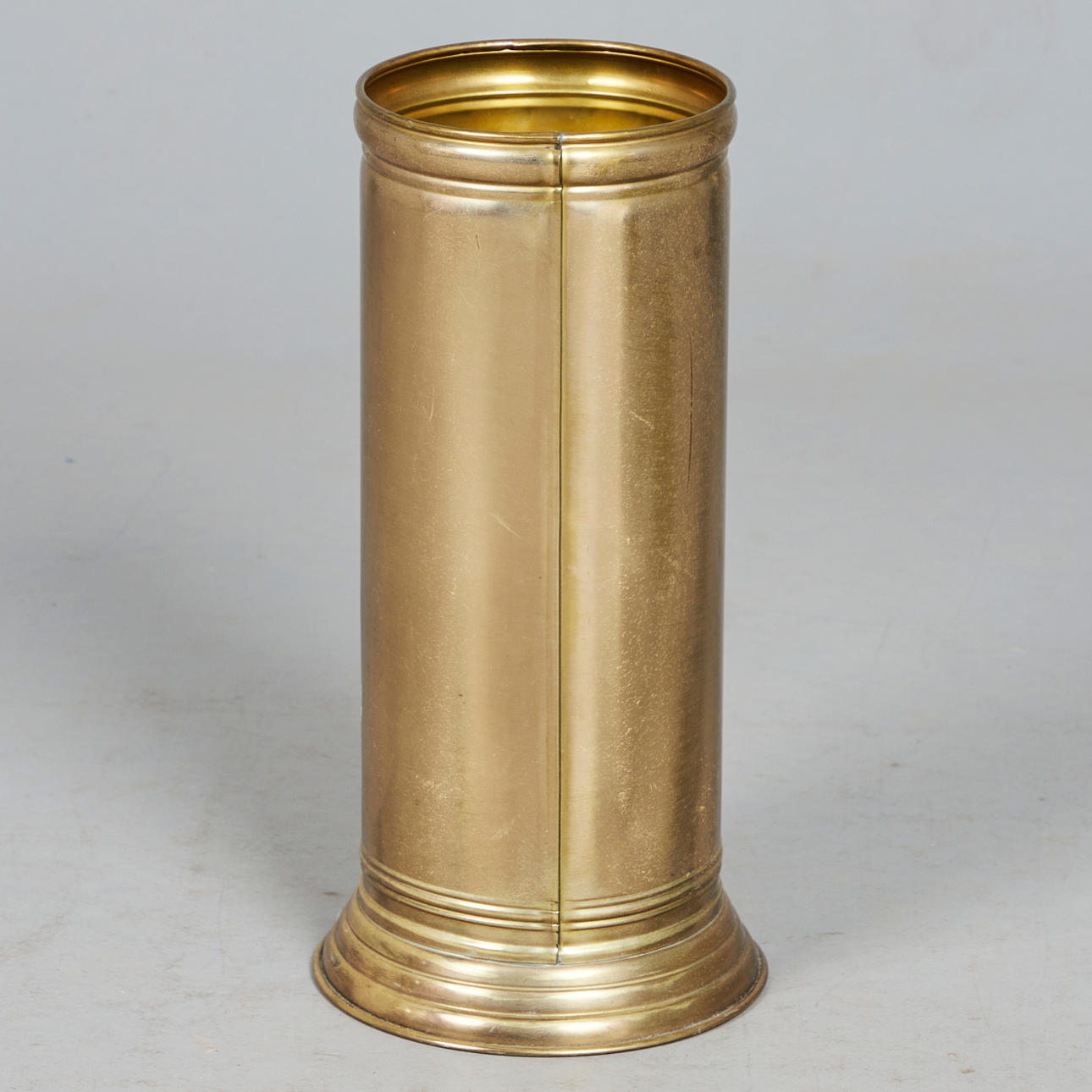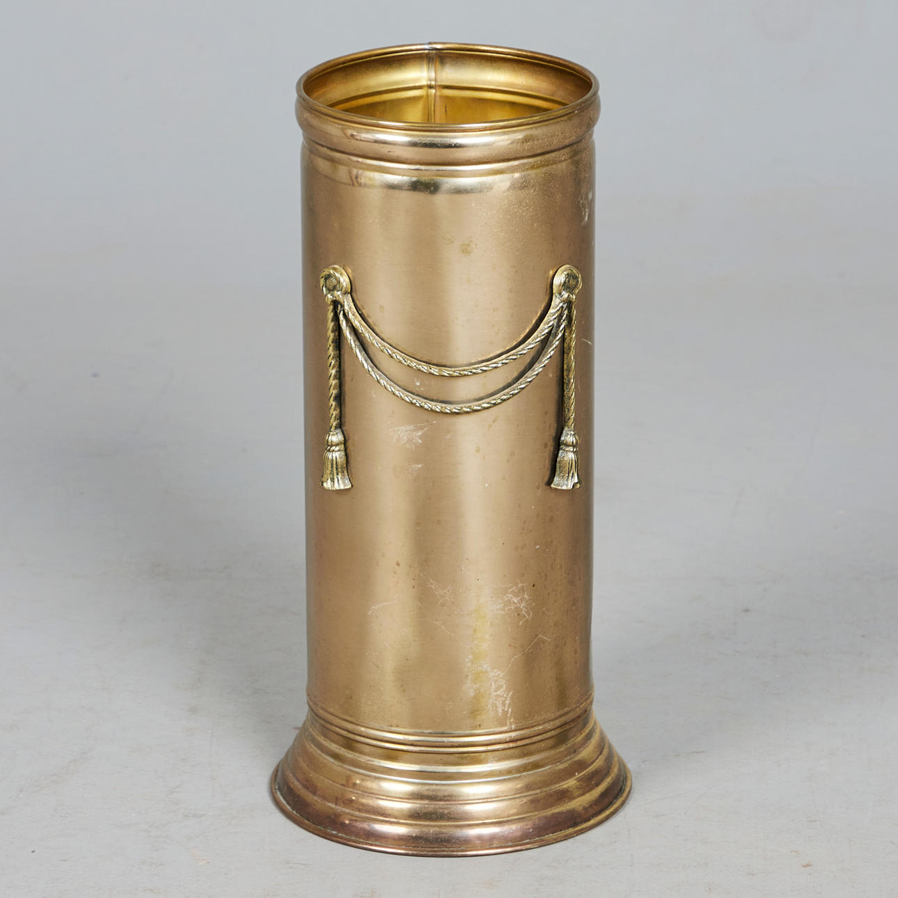 Paraplystativ, messing, 1950'erne. Cylindrisk konstruktion af messing, dekoreret med en snoreformet applikation på siden, H.48cm, D.22cm.