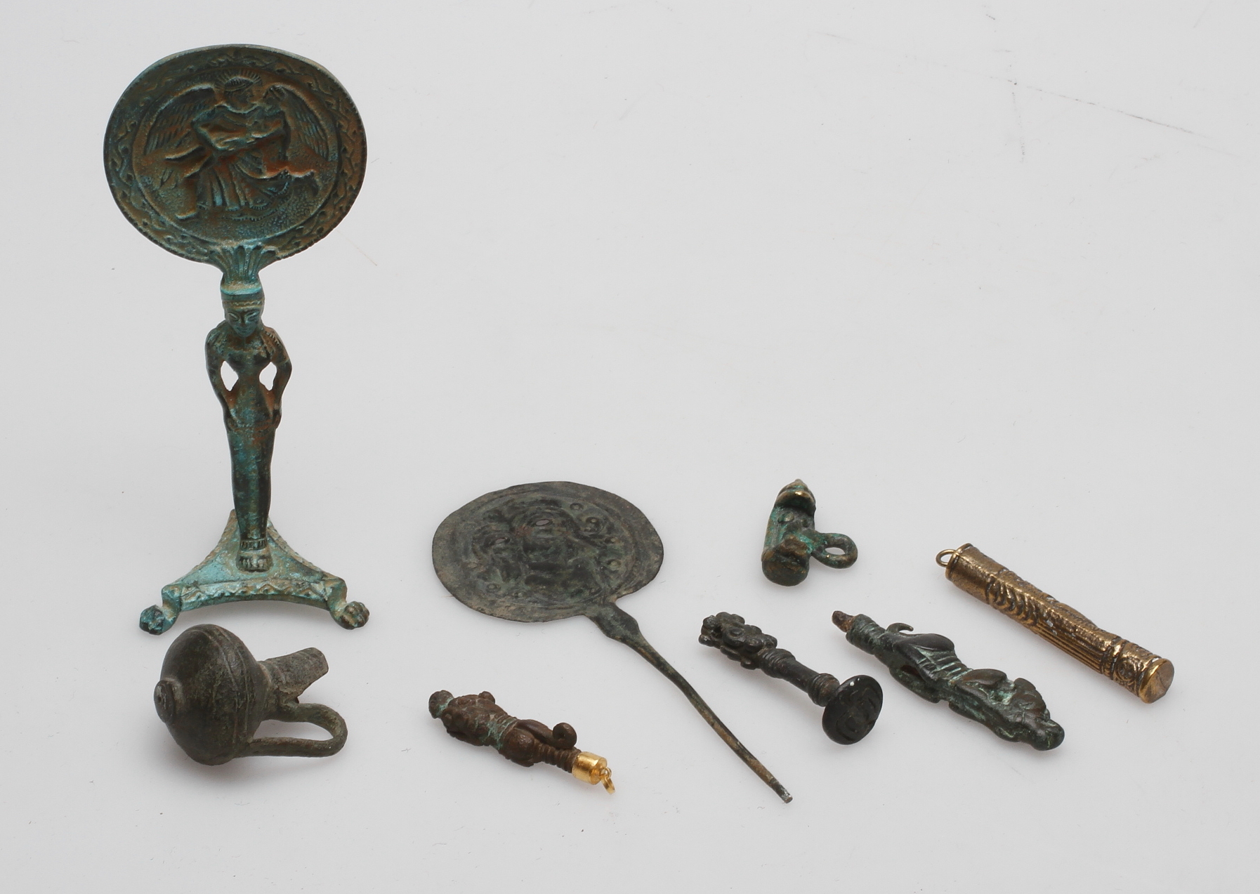 214588. KOLLEKTION BRONZEVARER, 8 dele, evt. antik.