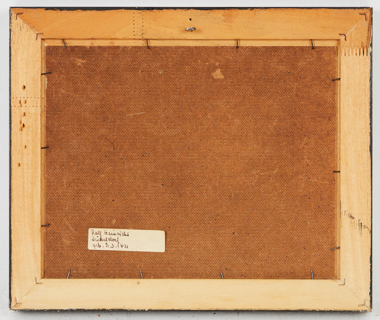 Rolf Heinrichs, maleri, efterårslandskab med vand, olie på hardboard. Afbildning af et efterårsagtigt ydre med en vandmasse og en truende bjergkæde i baggrunden, signeret nederst til højre og med en selvklæbende etiket på bagsiden, 22,5x28,5cm (31,5x37,5cm).