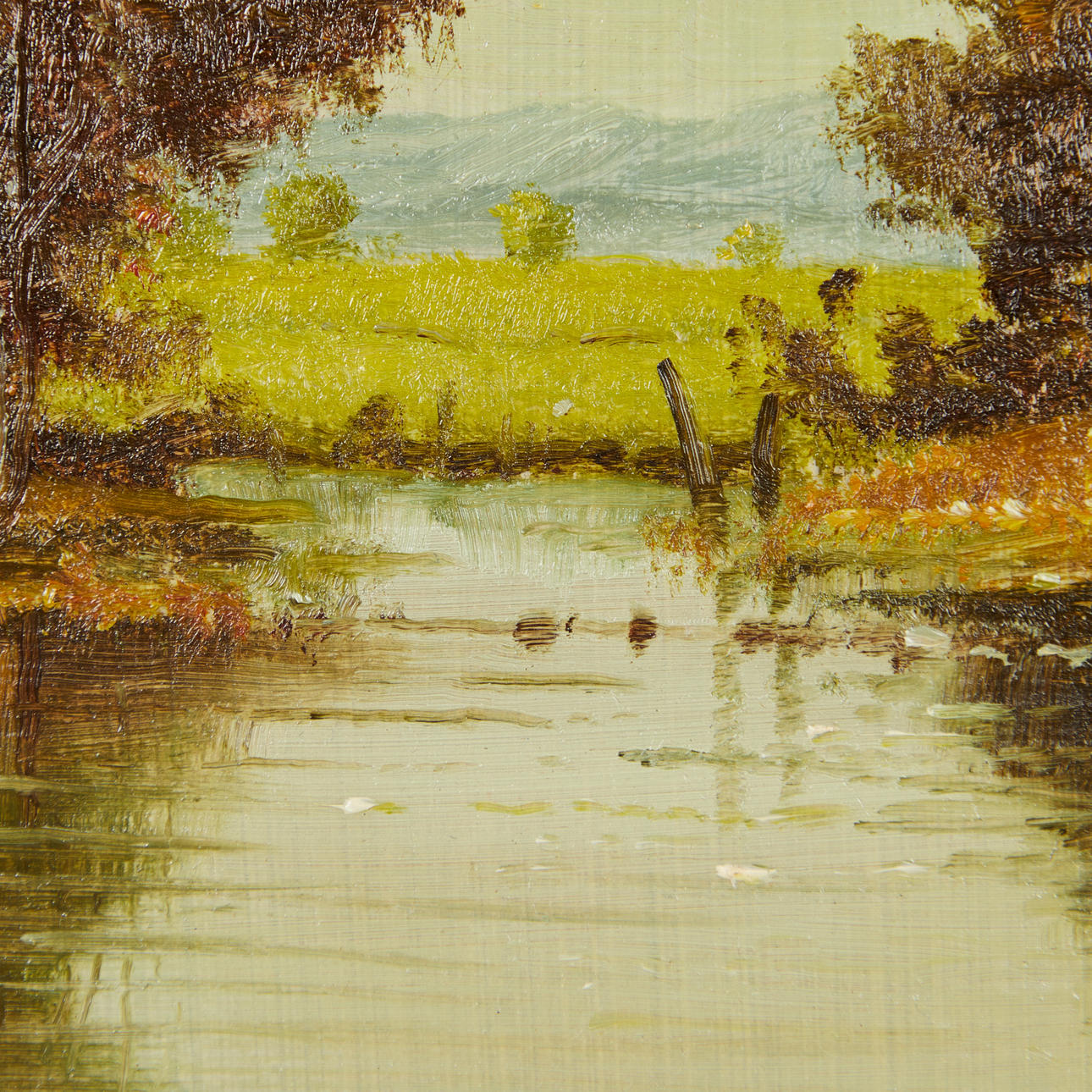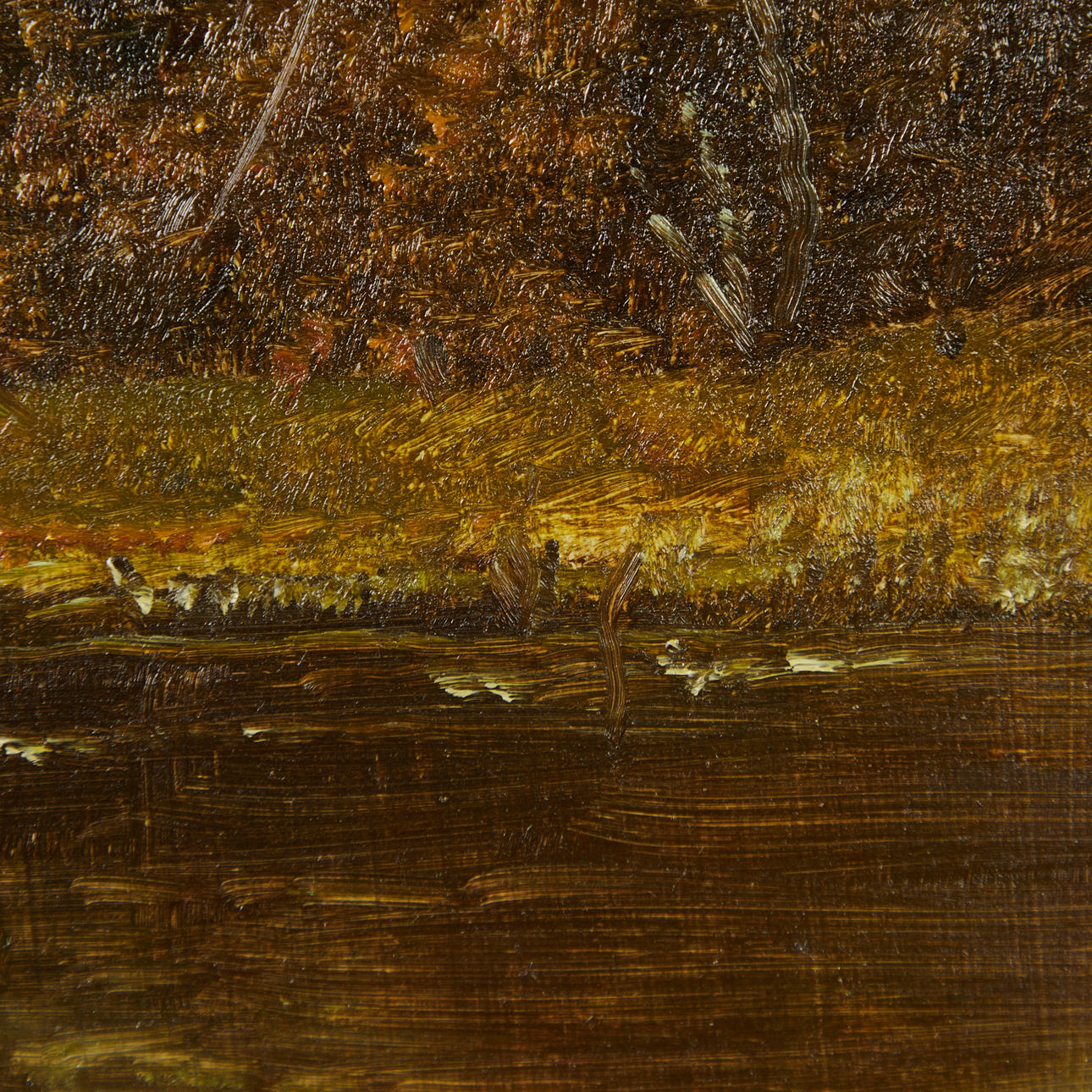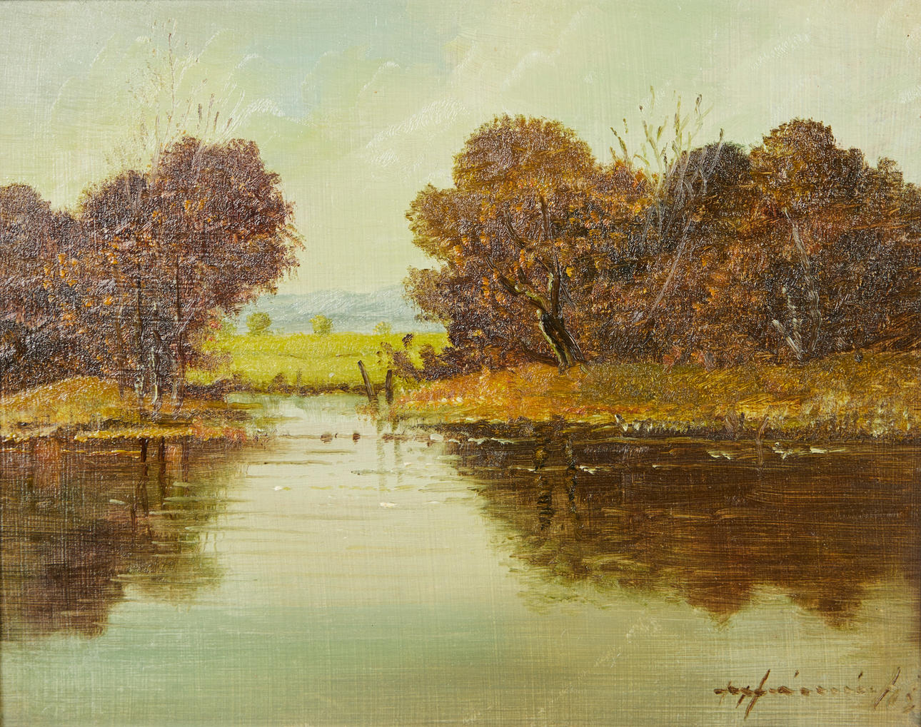 ROLF HEINRICHS. Maleri, efterårslandskab med vand.