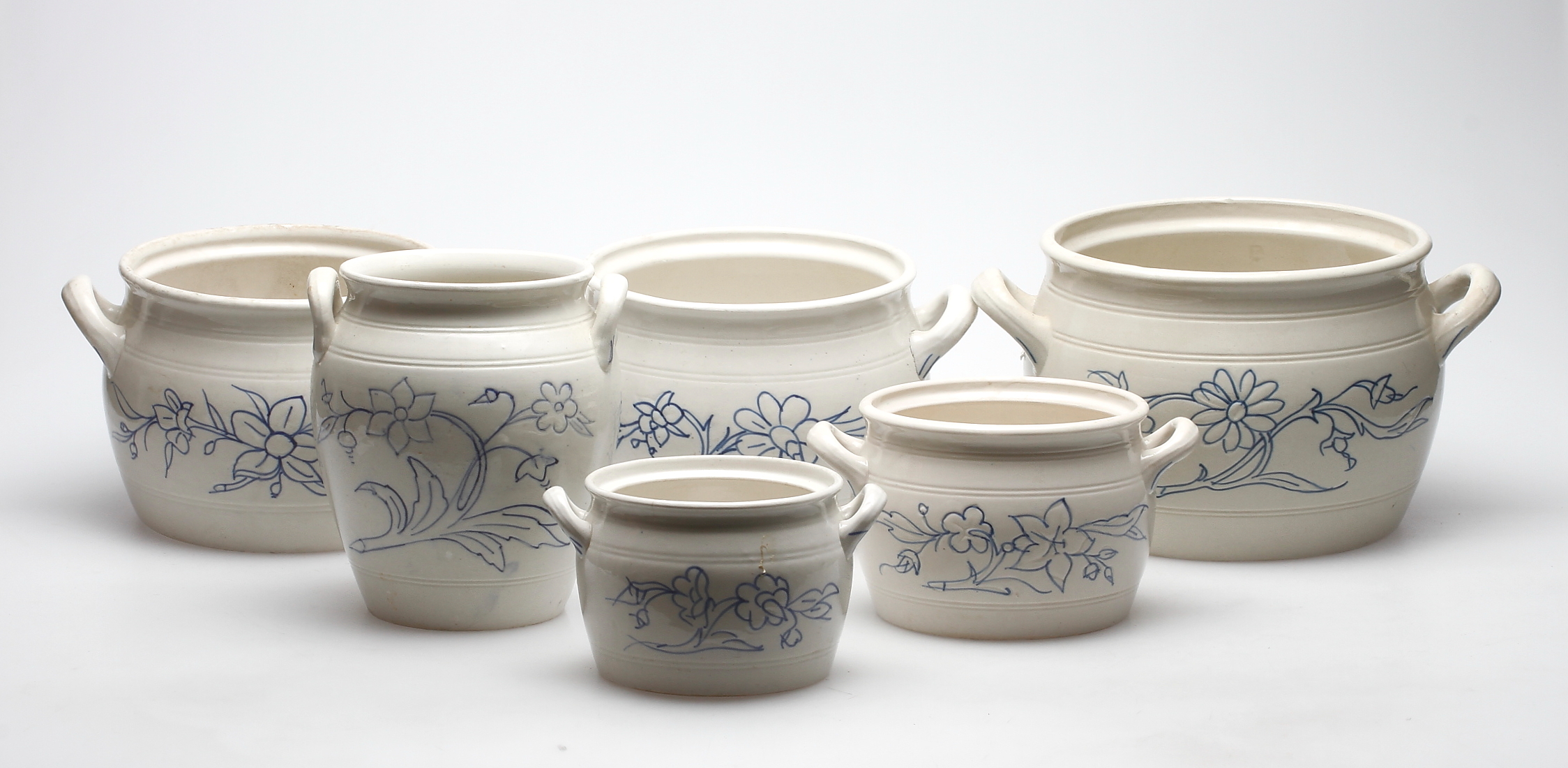 215029. POTER, 6 stk, stenmasse, Rörstrand og Gøteborg.