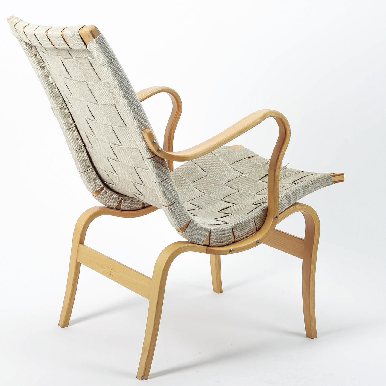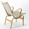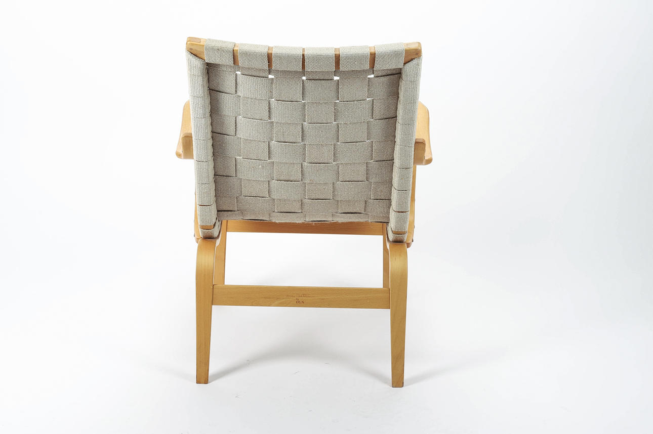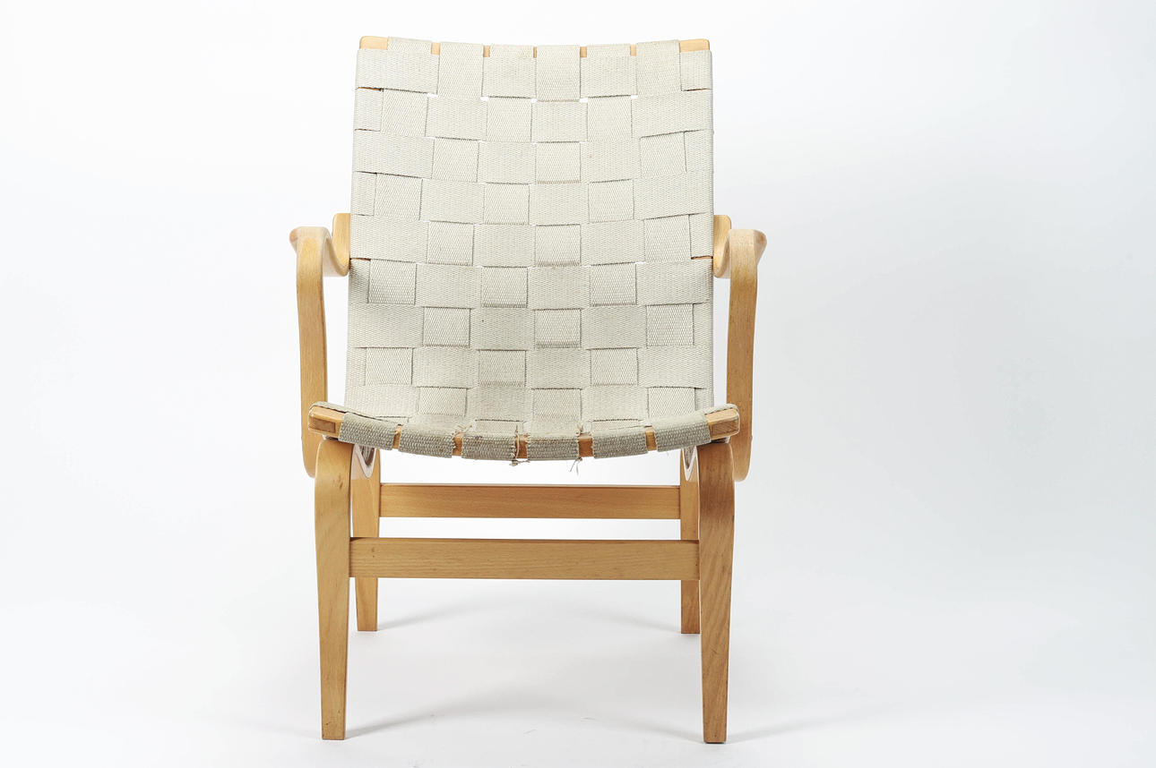 Bog, beklædt med flettet sadelgjord, mærke, model designet i 1941, sædehøjde ca 39 cm.
