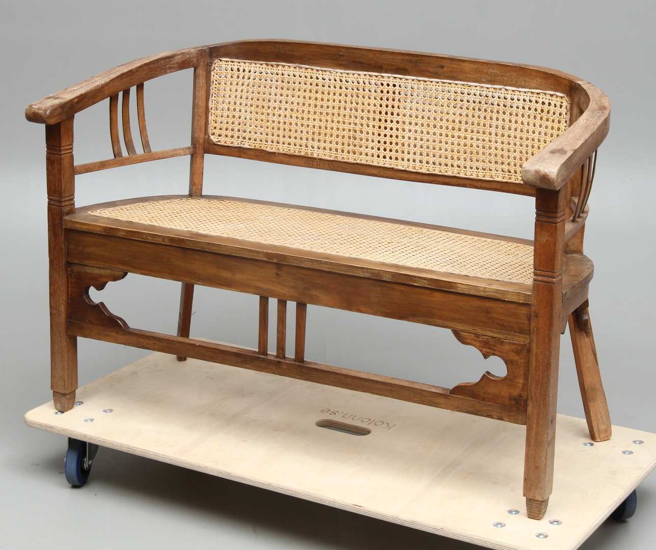 21595. SOFA, træ, rattansæde, kolonistil, 20. århundrede.