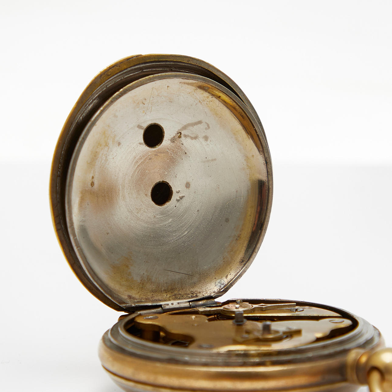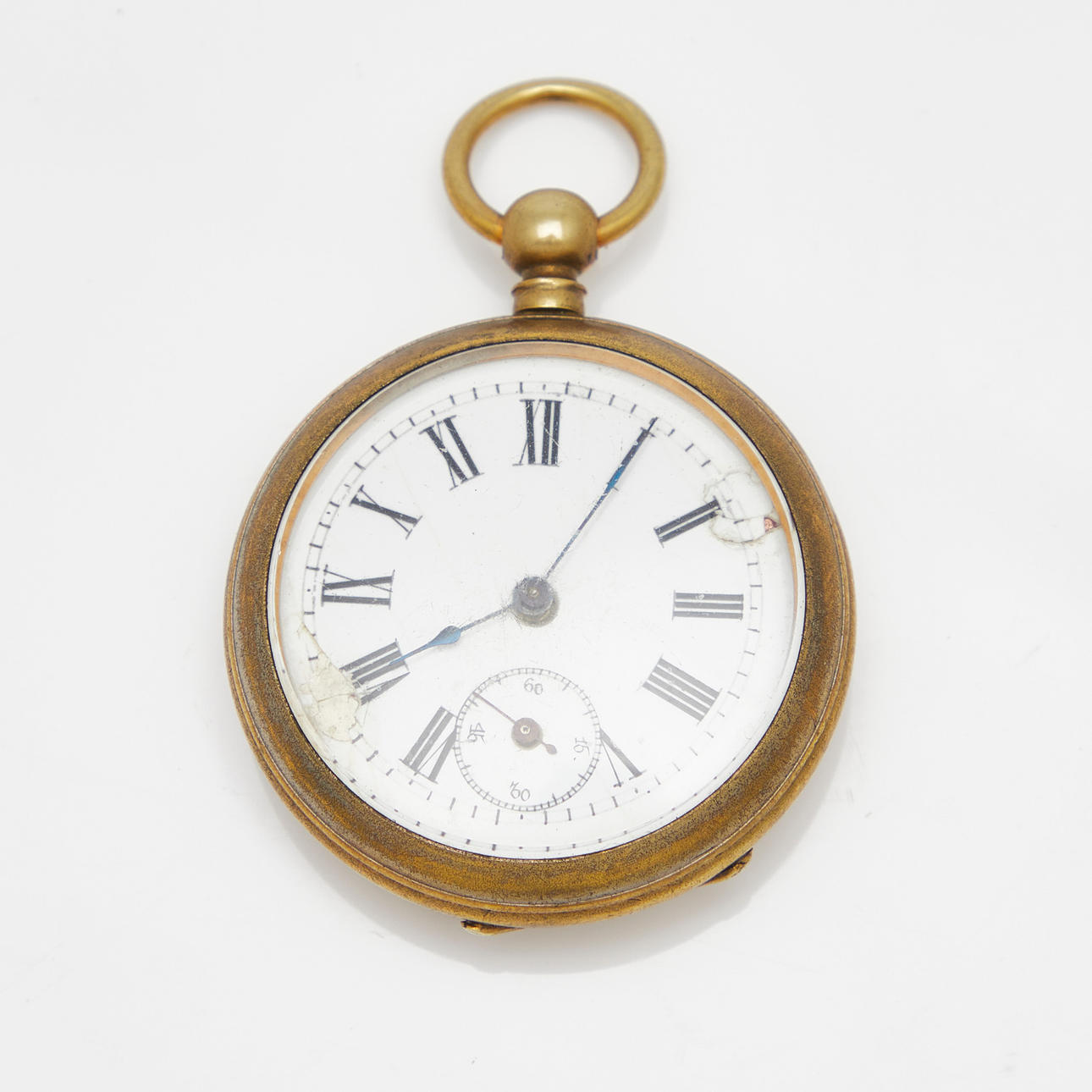 Fremstår med aldersrelaterede brugsspor, delvise ridser i rustfrit stål og glas, en urskive med spor af restaurering.