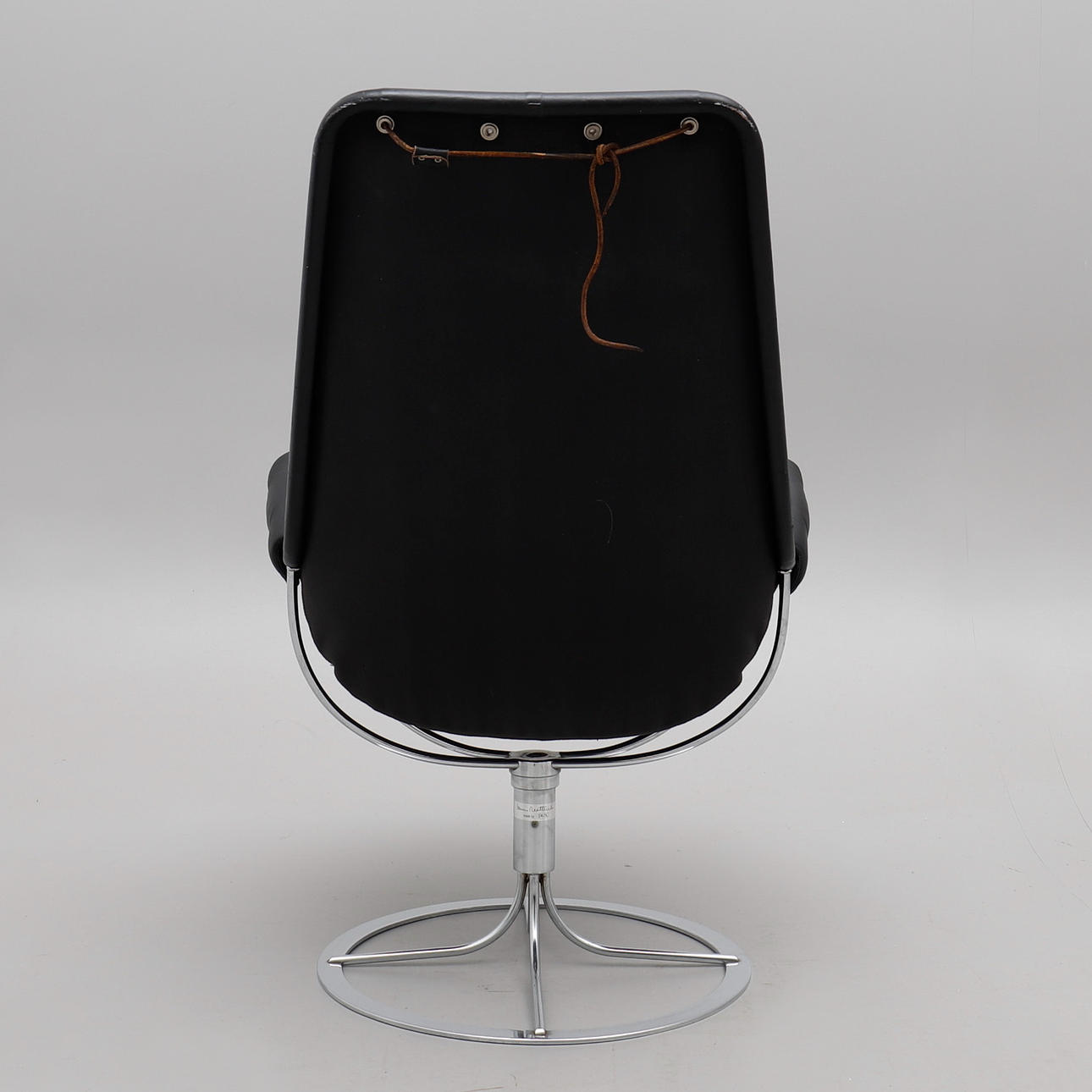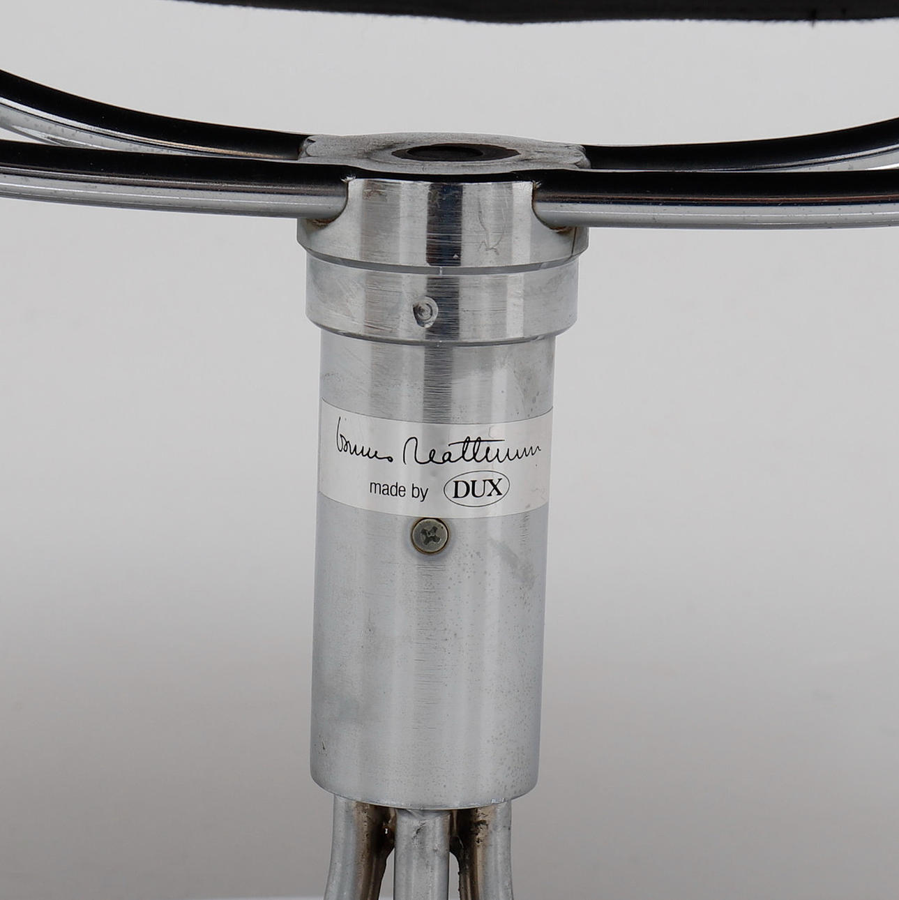 Betrukket med sort læder med løs nakkepude. Drejelig krom fod.