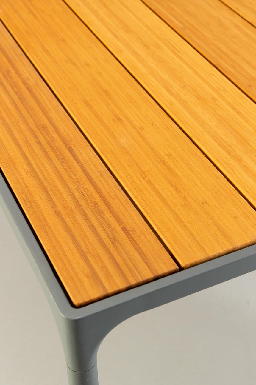 Stel af pulverlakeret aluminium i grå med bambus. HxBxD: 74x160x90cm.