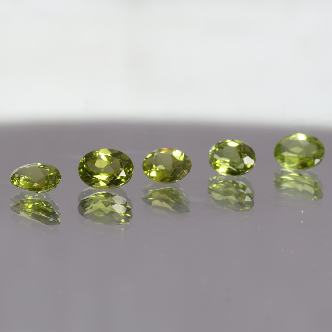 2162828. PERIDOTER, 5 stk, i alt ca 9,30 ct.