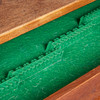 Alderssvarende tegn på slid og gnidning, kraftigt slid på træ og filt samt ridser og falmning i træet.