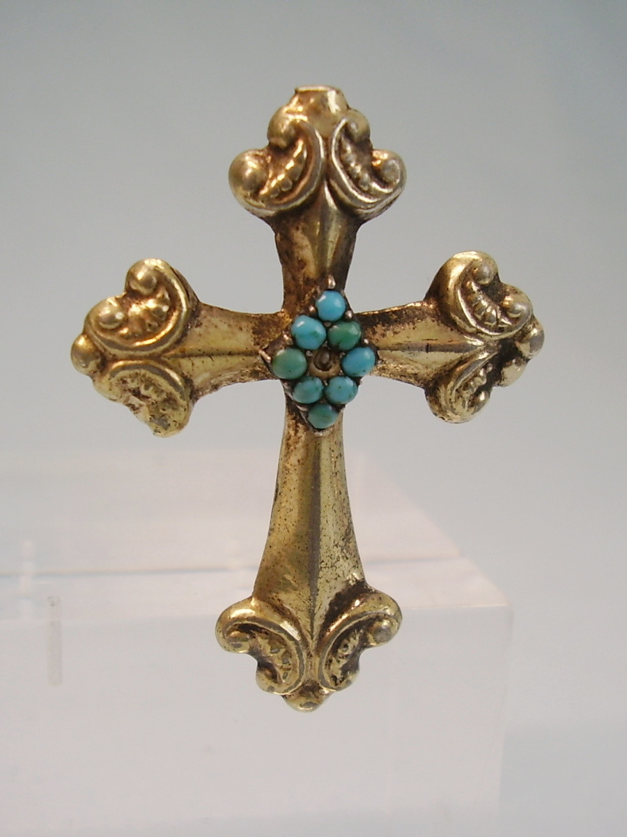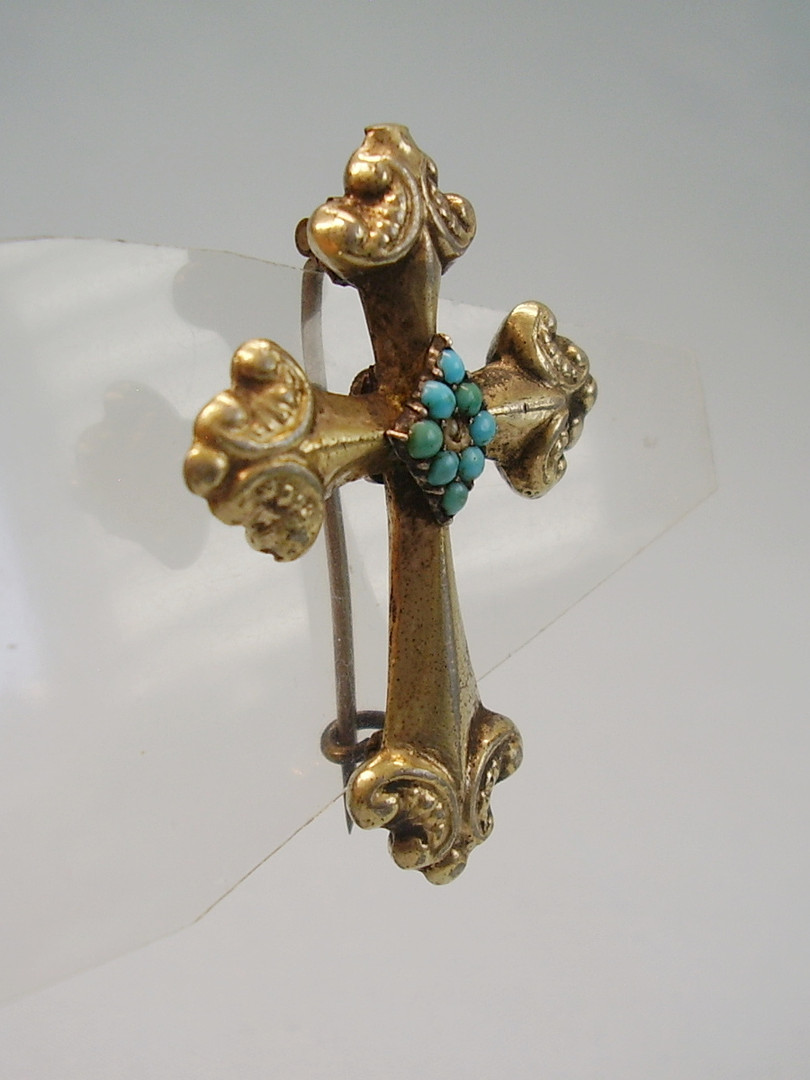 2163171. BIEDERMEIER BROCHE TURKIS KRYDSBROCHE.