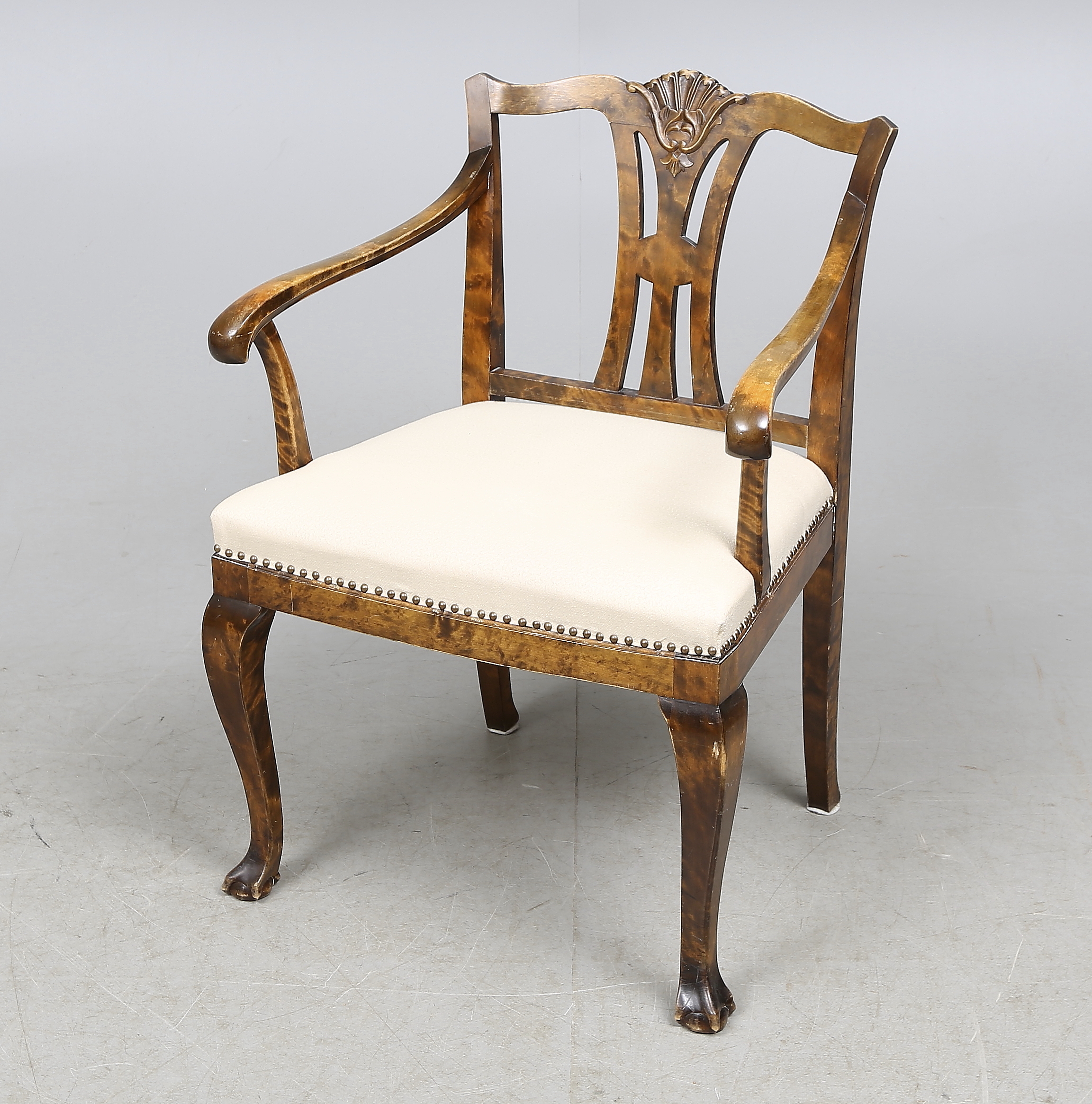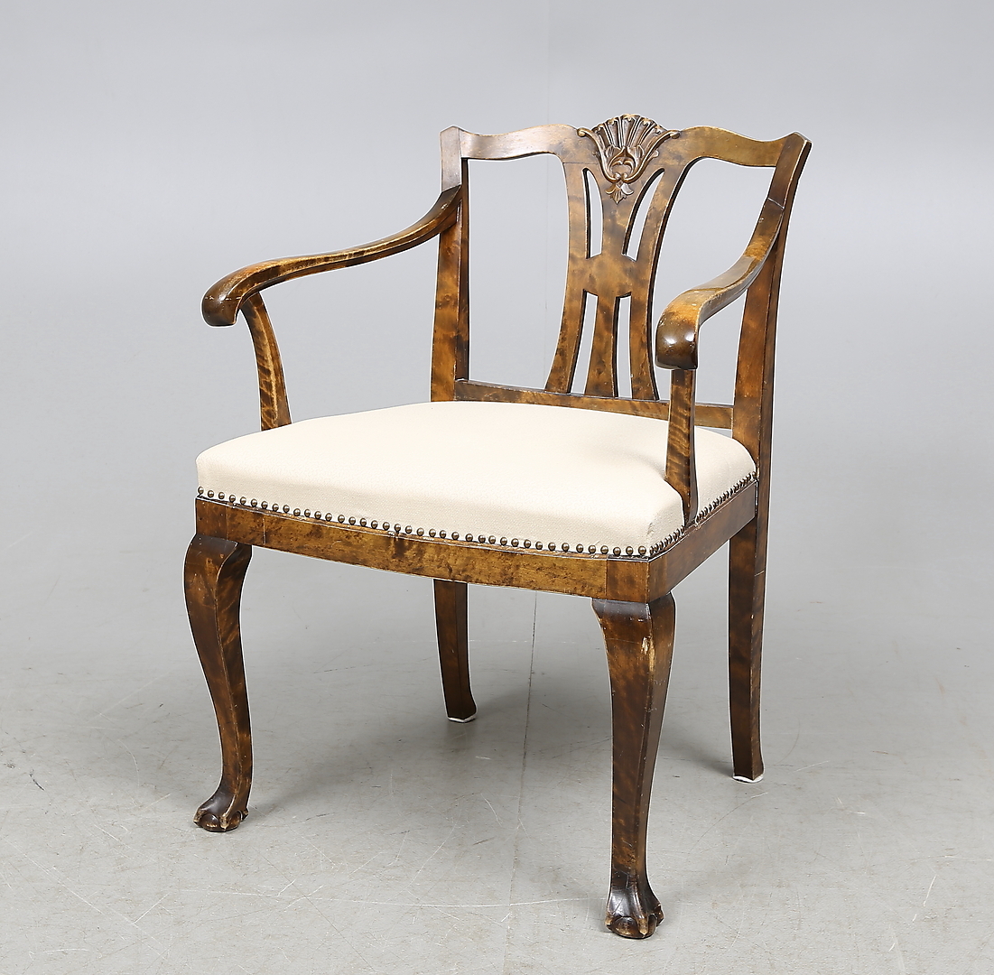 216341. LÆNESTOL, birk, Chippendal stil, 20. århundrede.