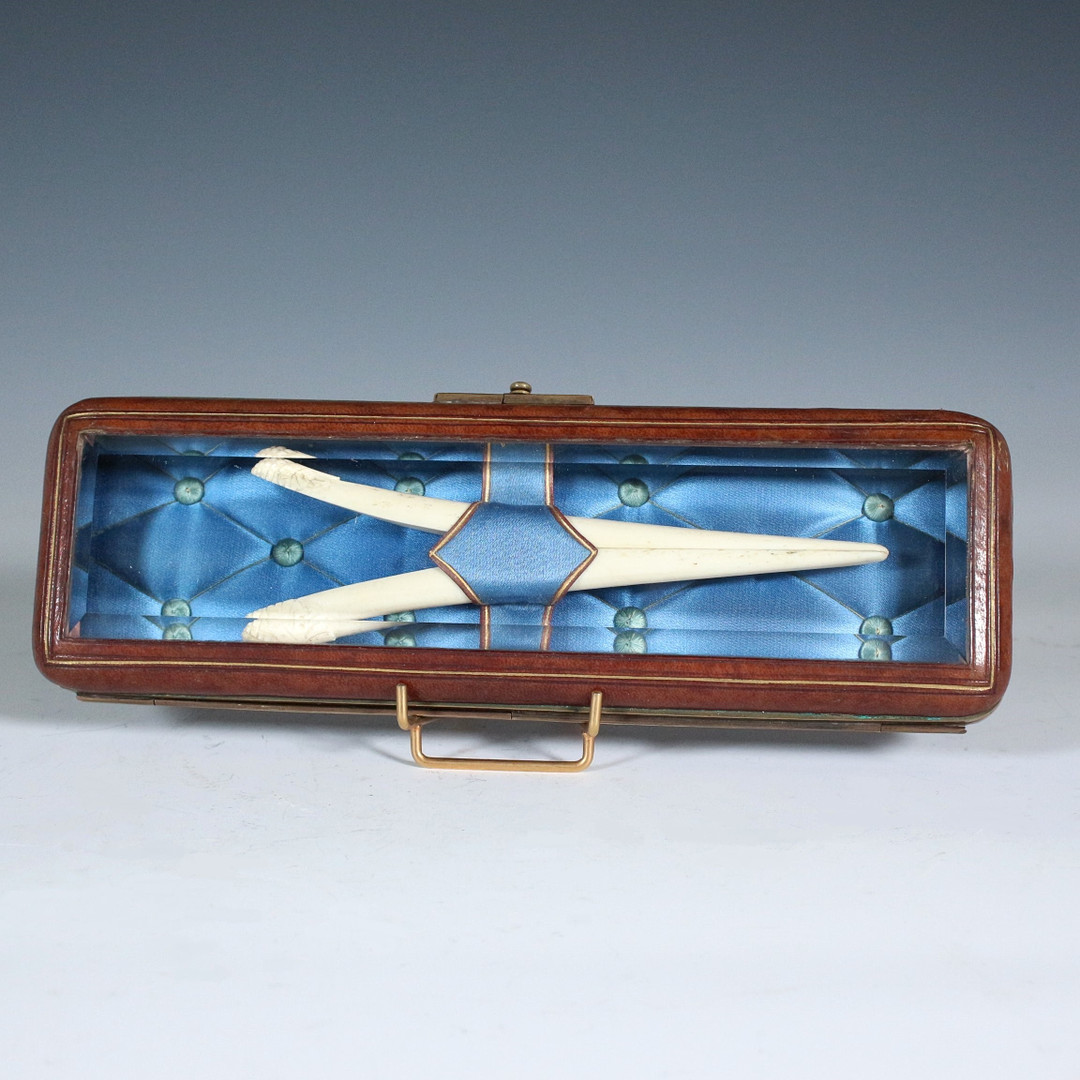 2163864. Antik handskebåre, ben, med æske.