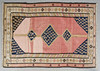 Kilim / tæppe, stof. Håndvævet garn- og trådtæppe med geometrisk diamantmønster i polykrom farve, frynset langs langsiderne, 159x115cm.