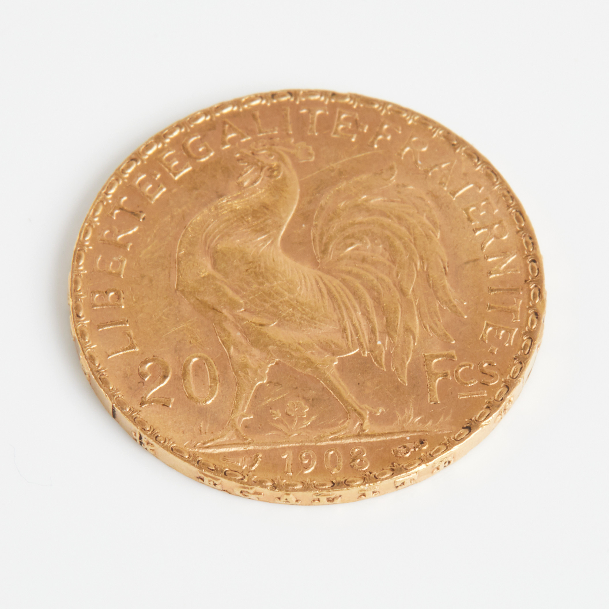 2170055. GULD MØNT, Frankrig, 20 francs 1908.