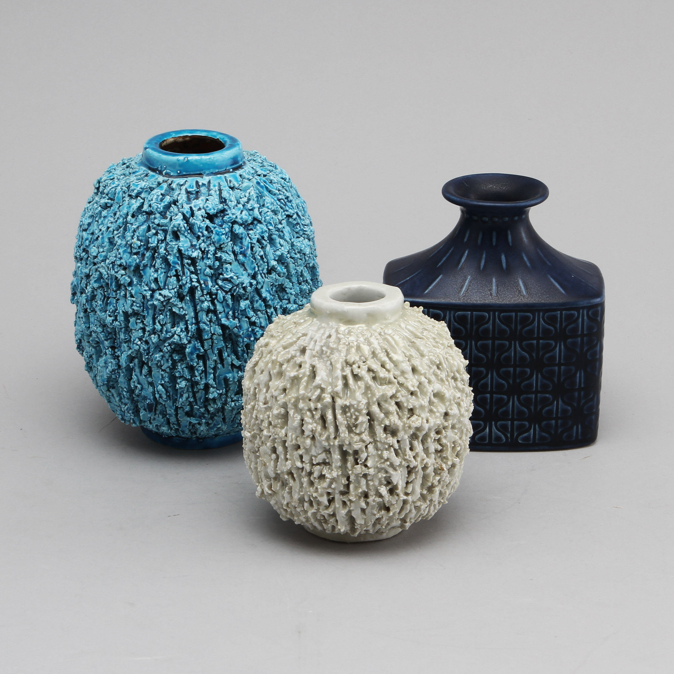 217325. VASER, 3 stk, stentøj, Gunnar Nylund, Rörstrand.