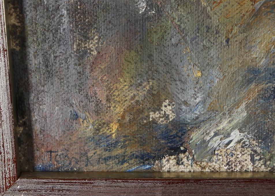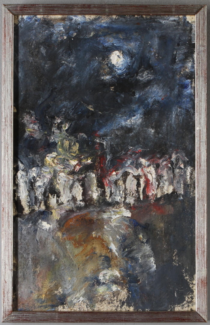 217487. TOM KRESTESEN. "Procession at Easter", olie på Panel, signeret.