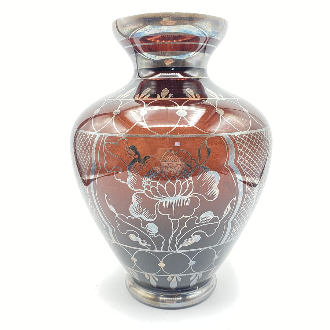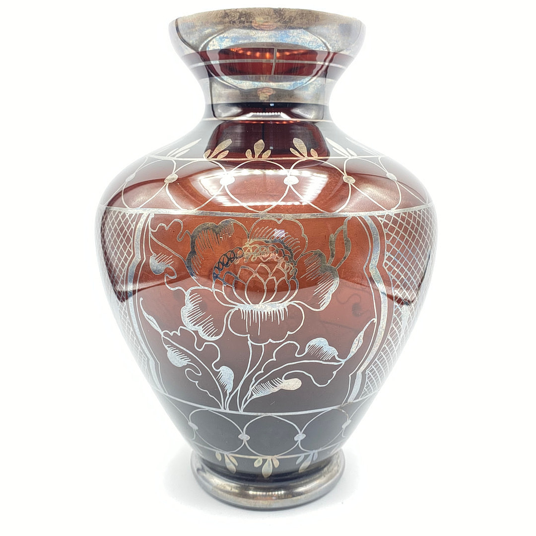 2175130. ITALIEN. GLASVASE SØLVOVERLAG.