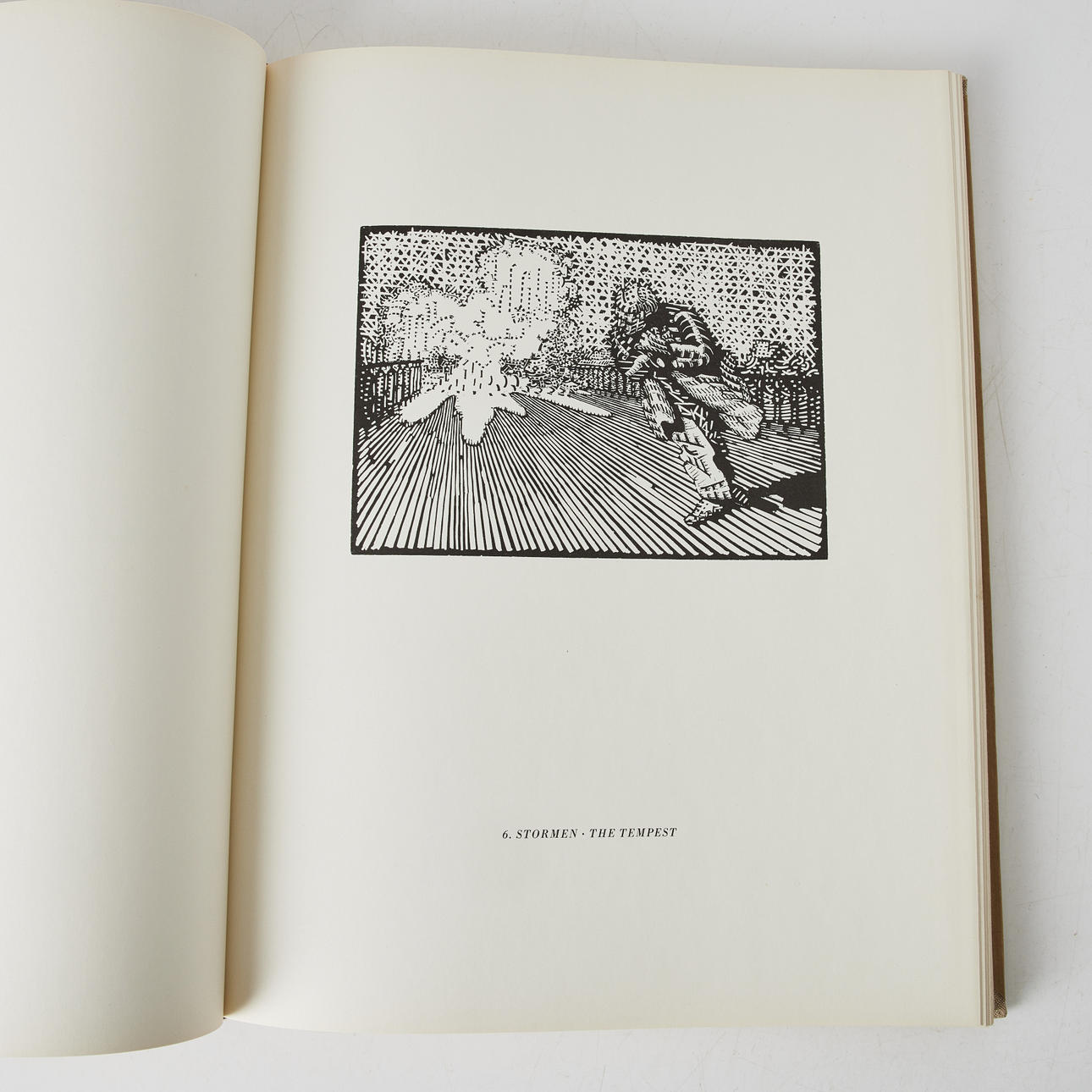 Folio (430x330 mm. båndene). 95 linosnit Palle Nielsen (alle). Grå halvkugleformet indbinding med titel trykt på omslagene. Papkasse.