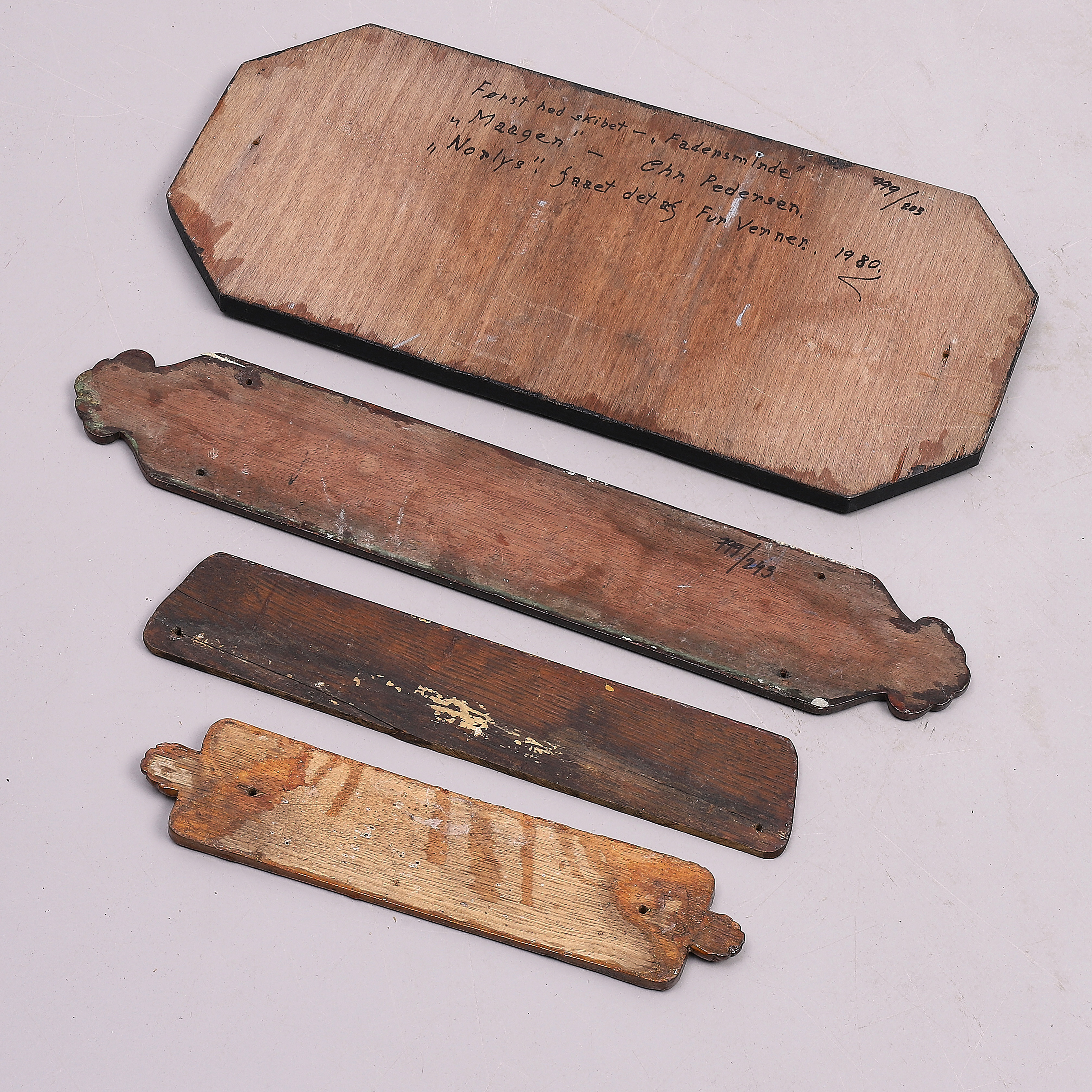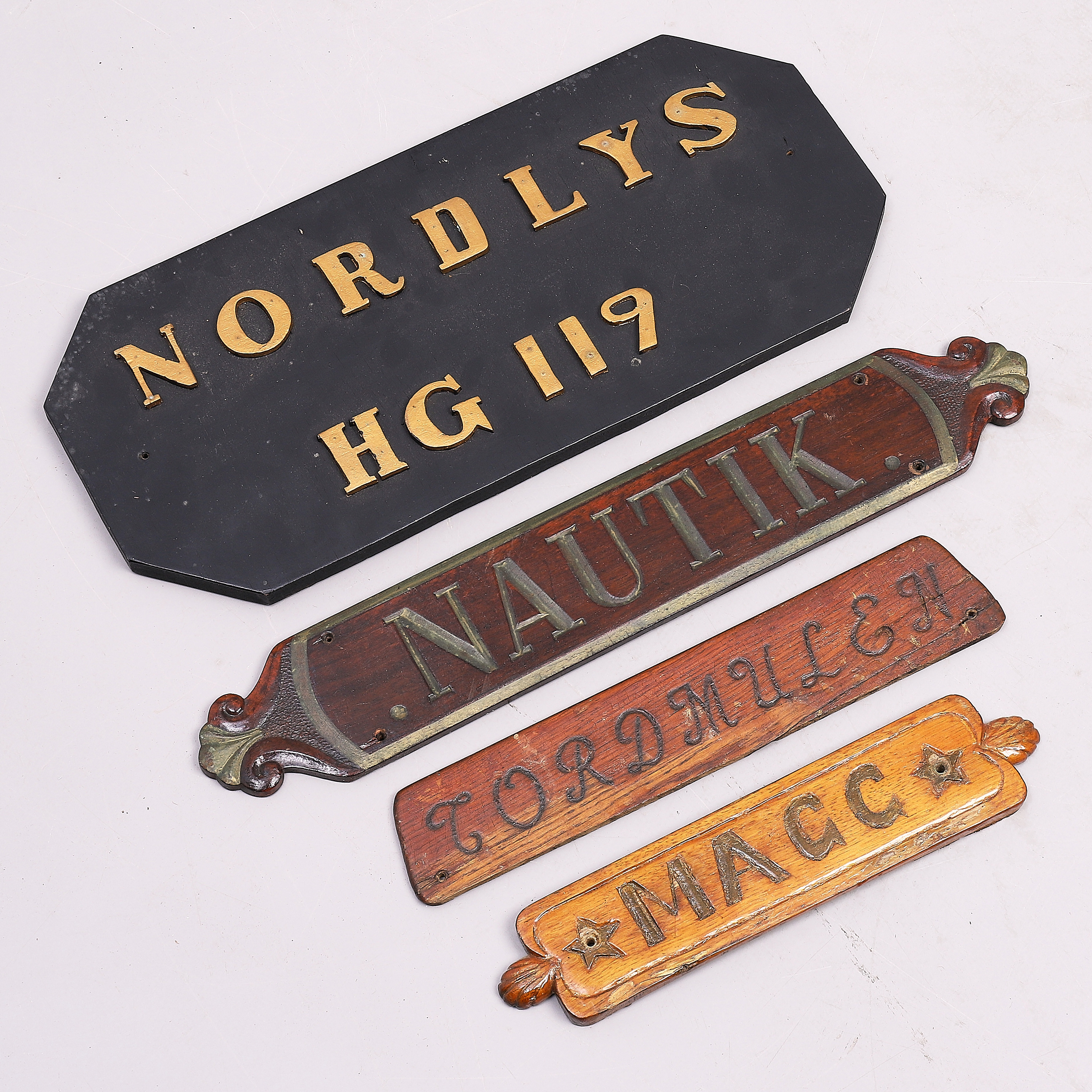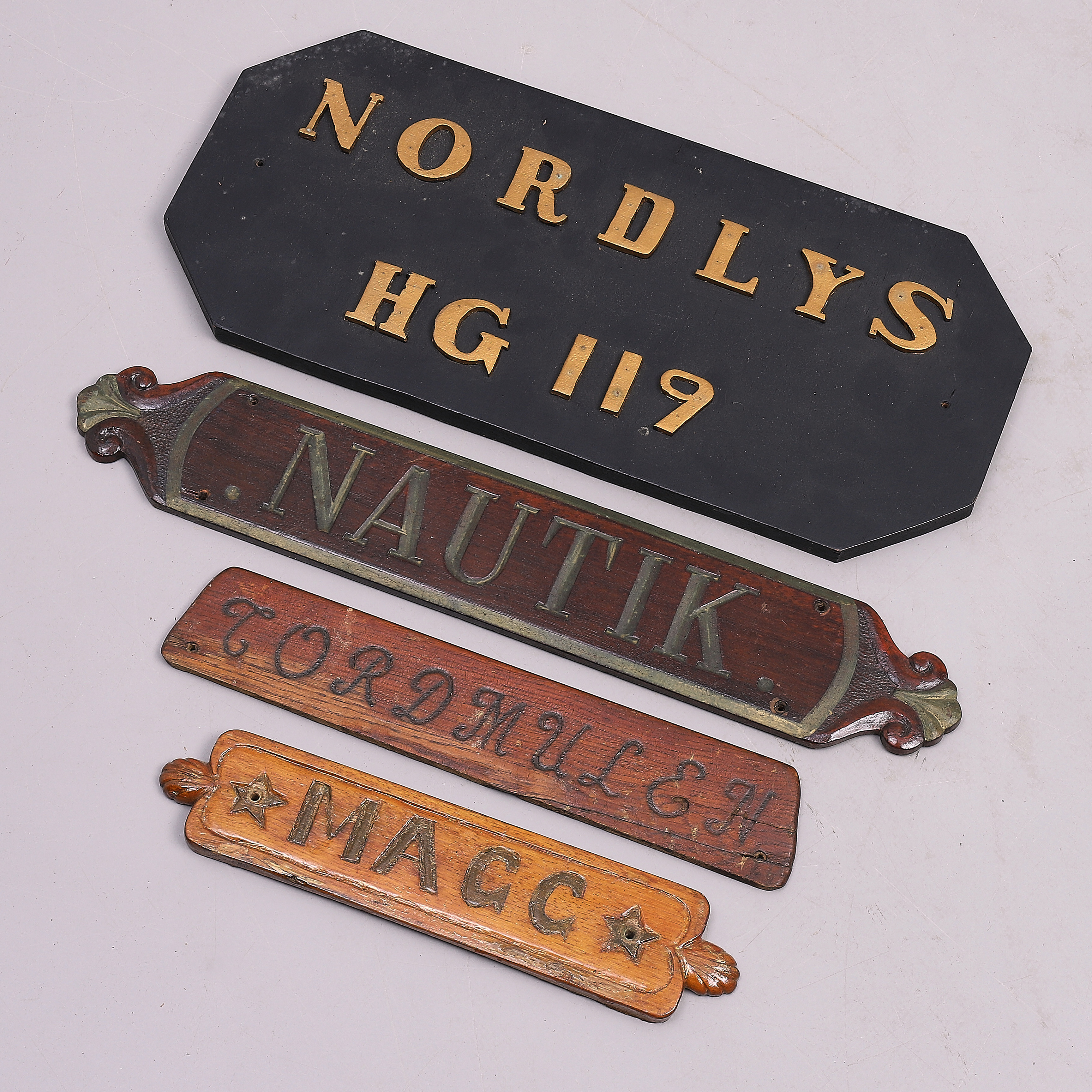 2179485. NAVNEPLADER, 4 stk, fra både.
