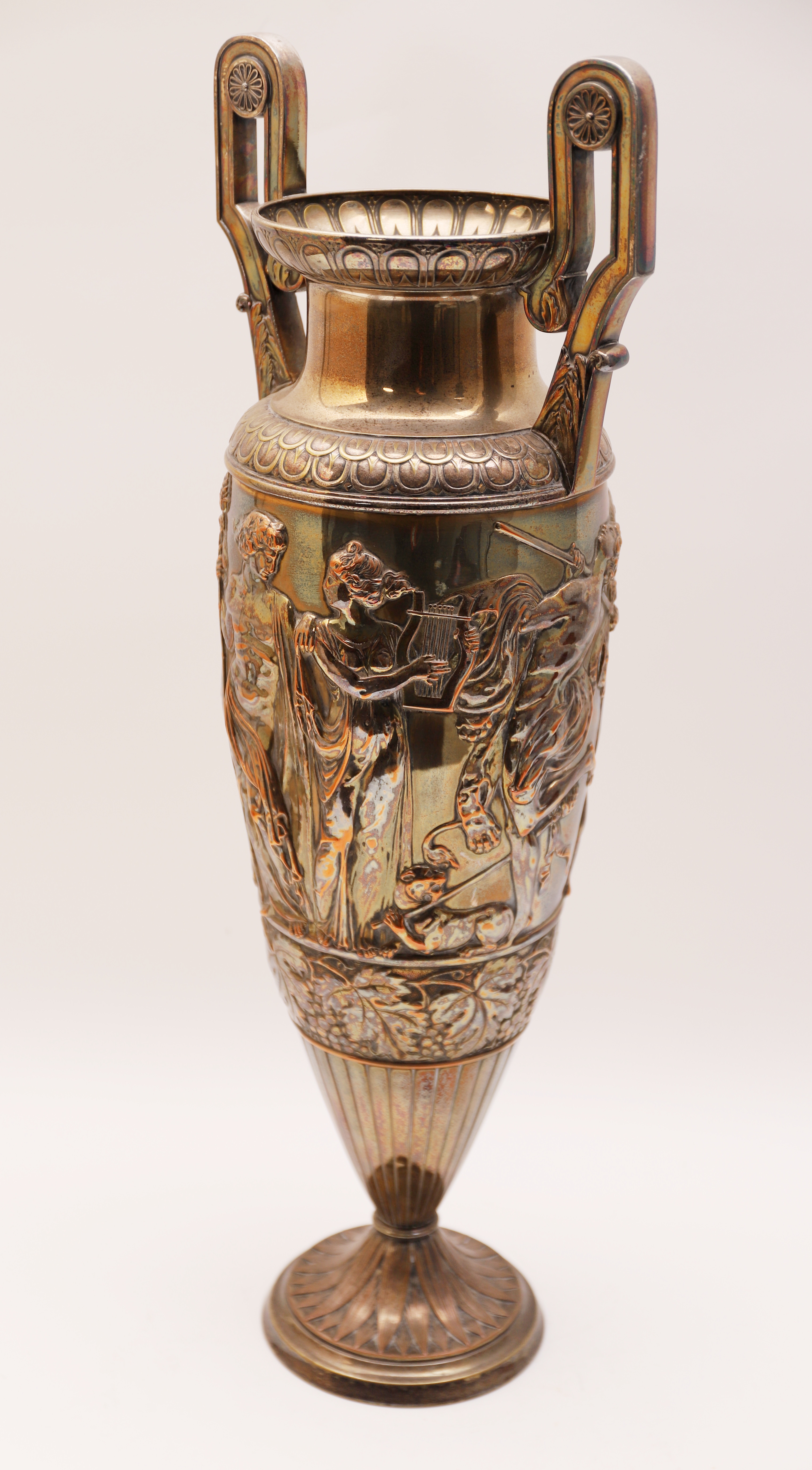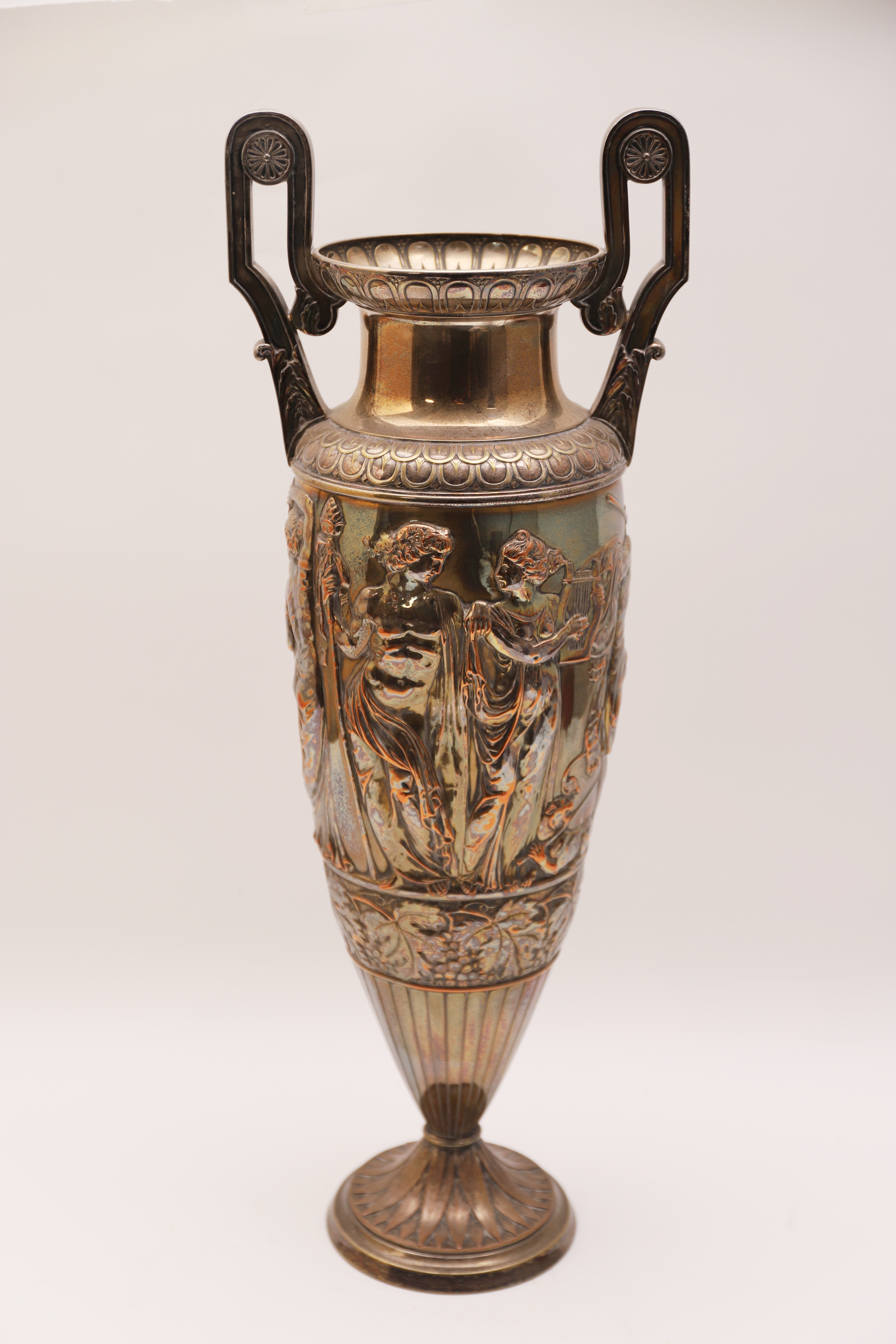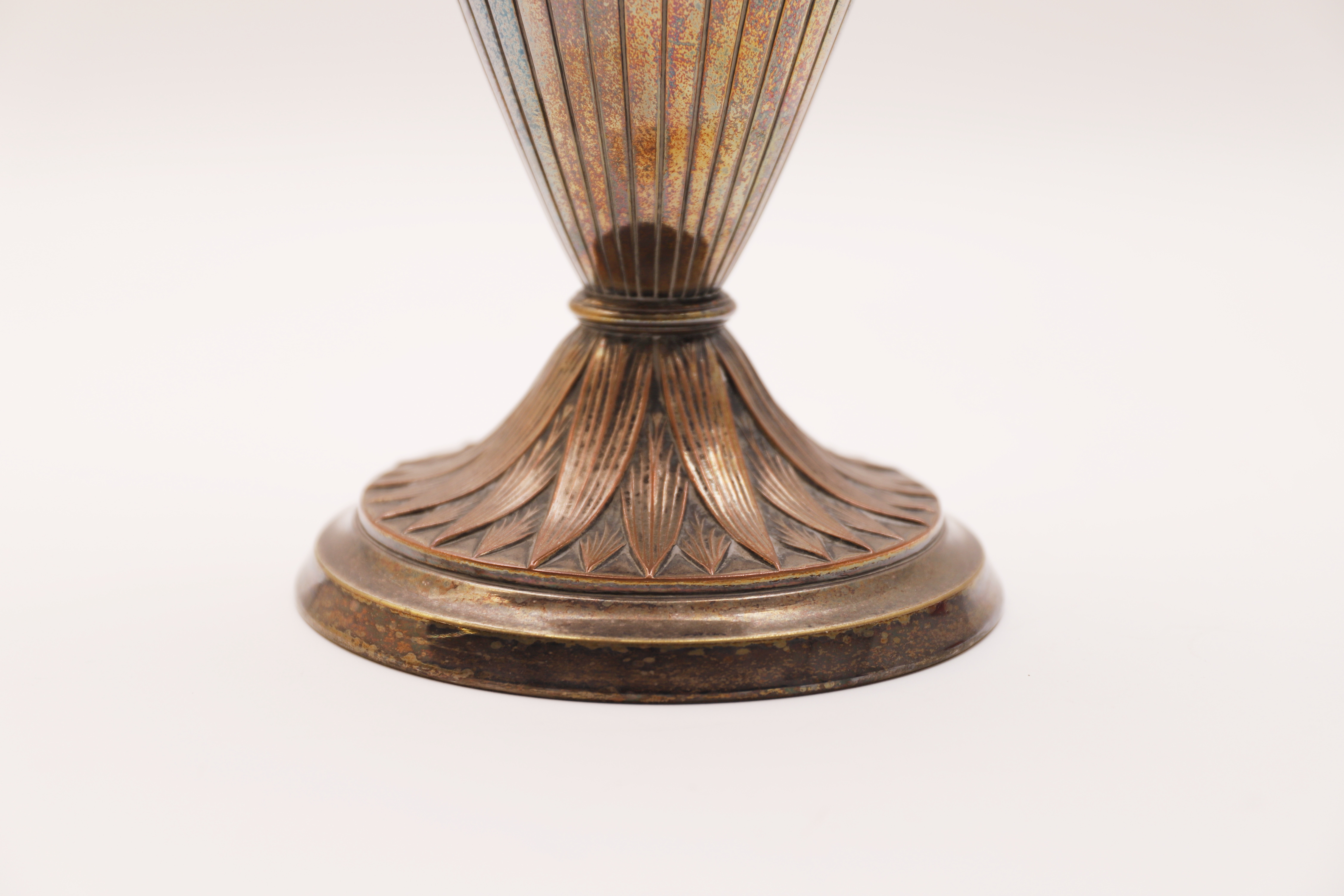 2179602. MODERNISTISK VASE, amfora type, præget metal.