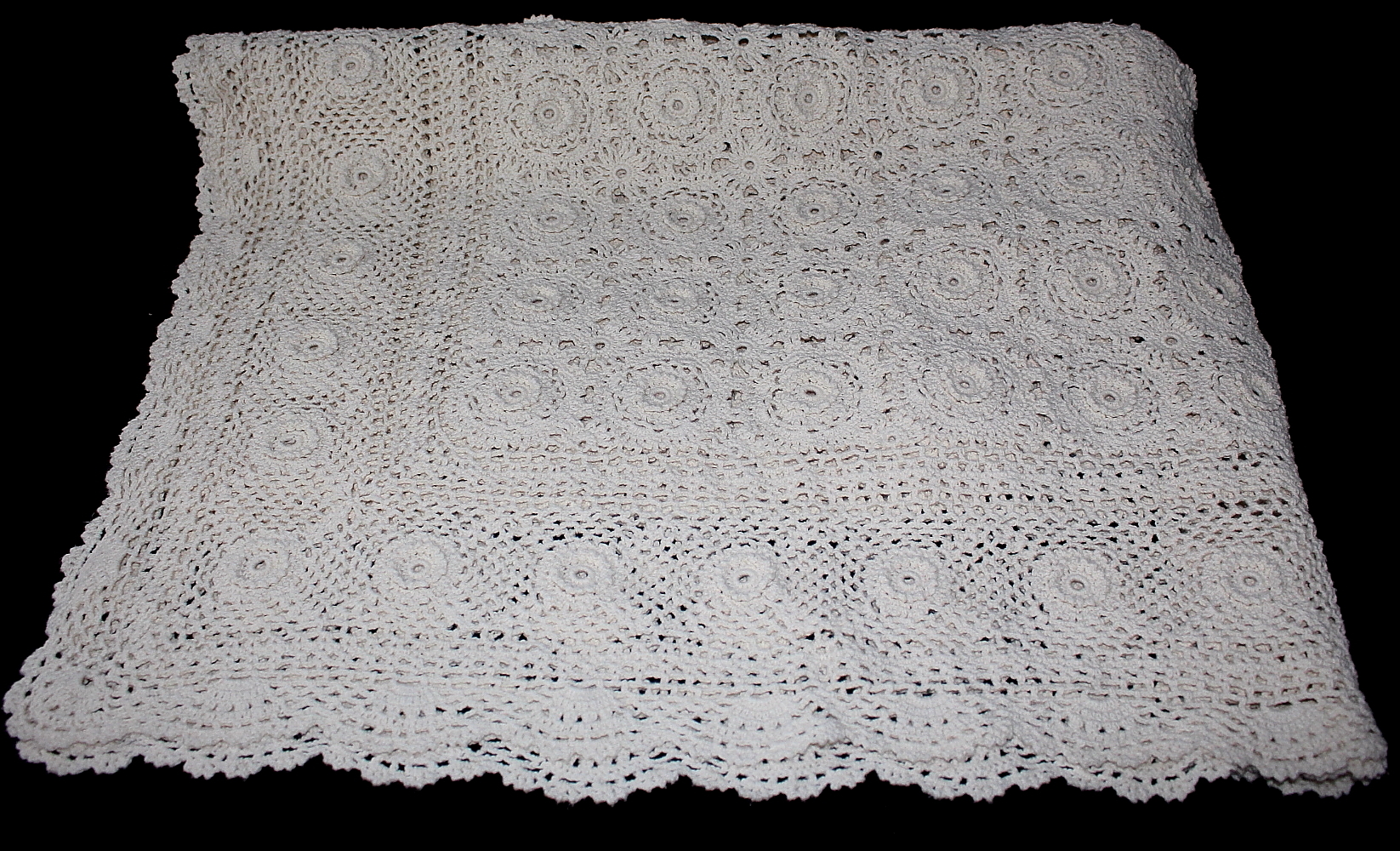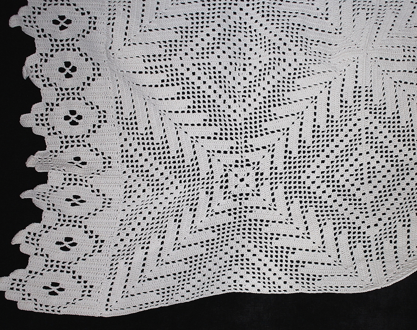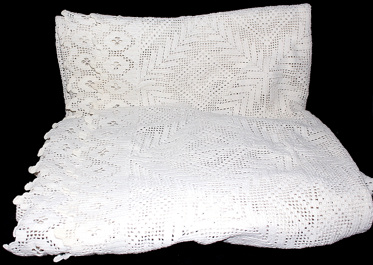 218065. OMSLAG, Hæklet, med hæklet stof.