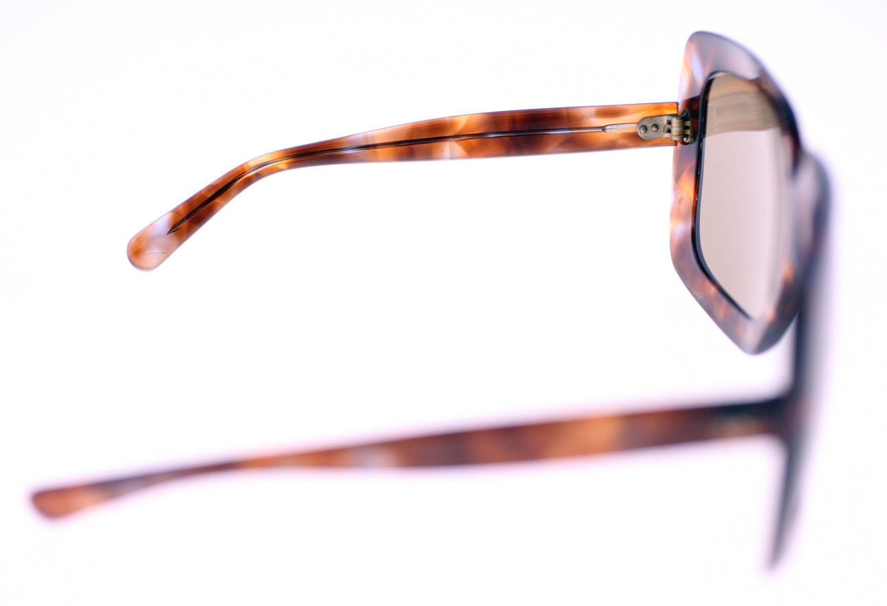 Krydsstribet brun plastikramme og firkantede brune linser "Oversized".