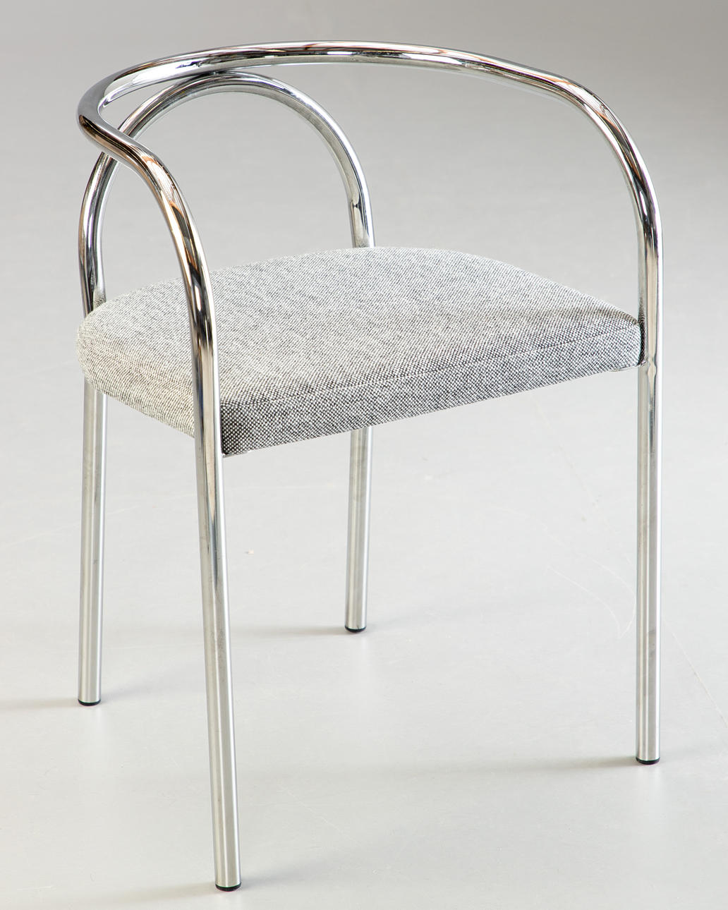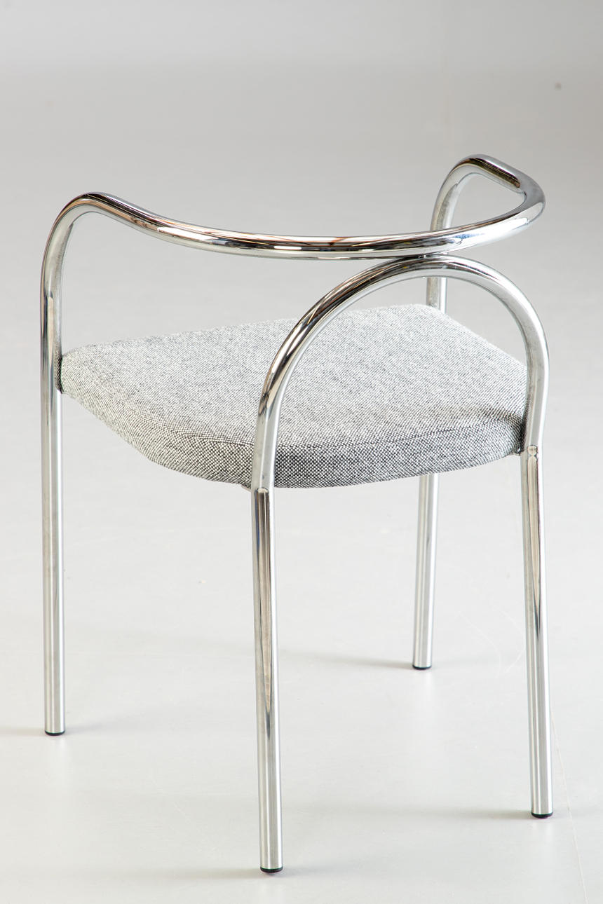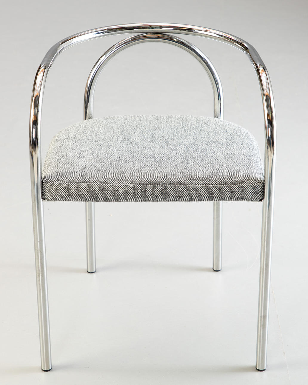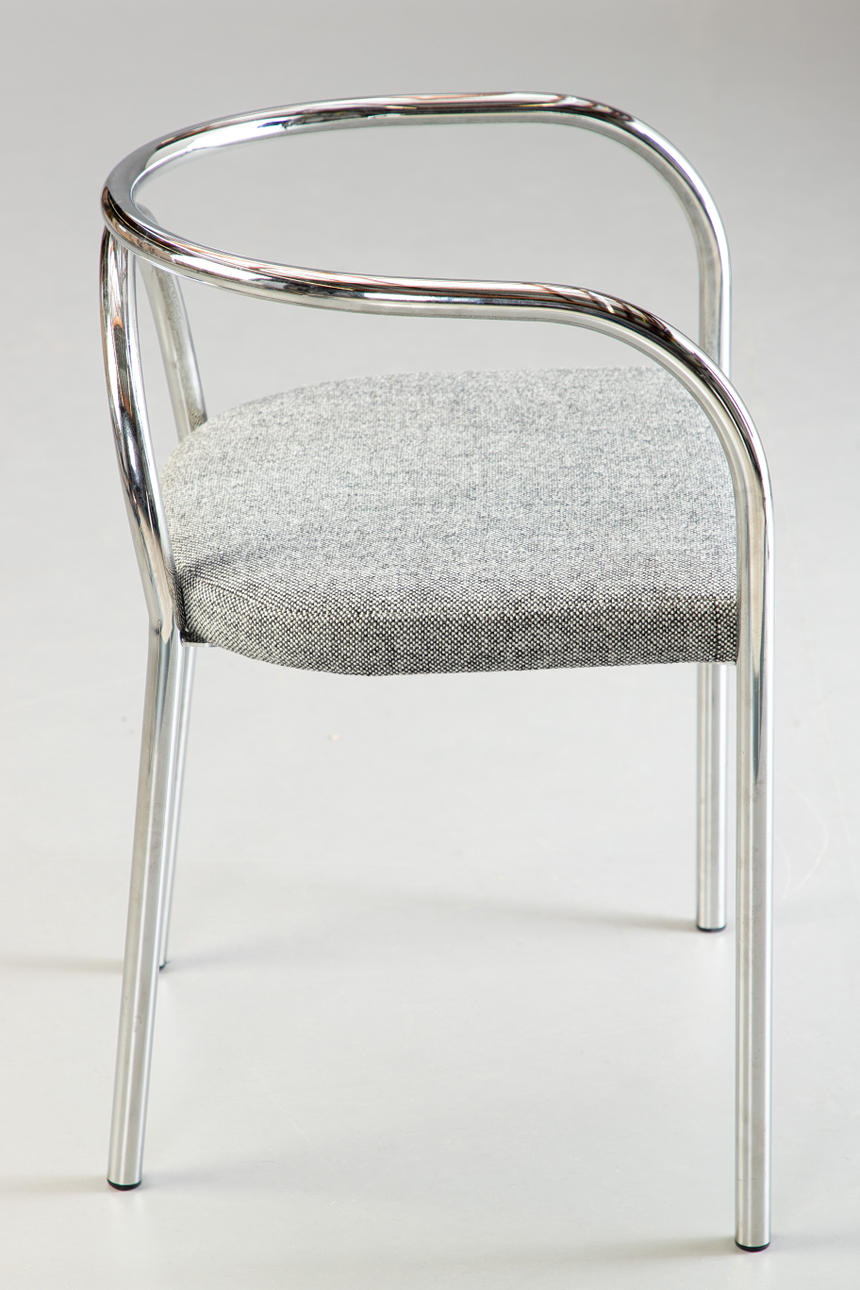 Udkast: 1932. Forkromet stålrør, Ø 25 mm. Sædebetræk Hallingdal fra Kvadrat af uld i lysegrå og sort.