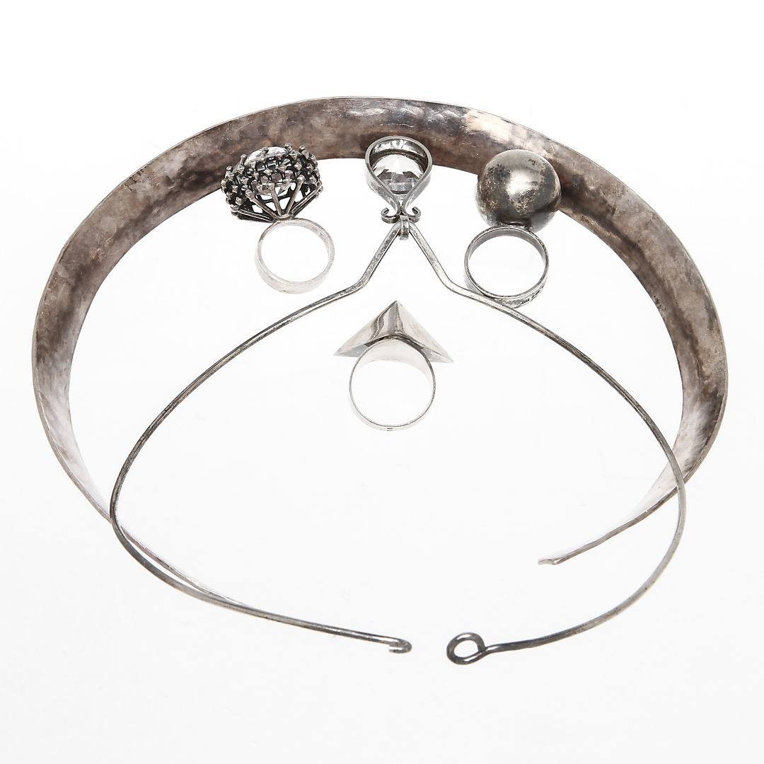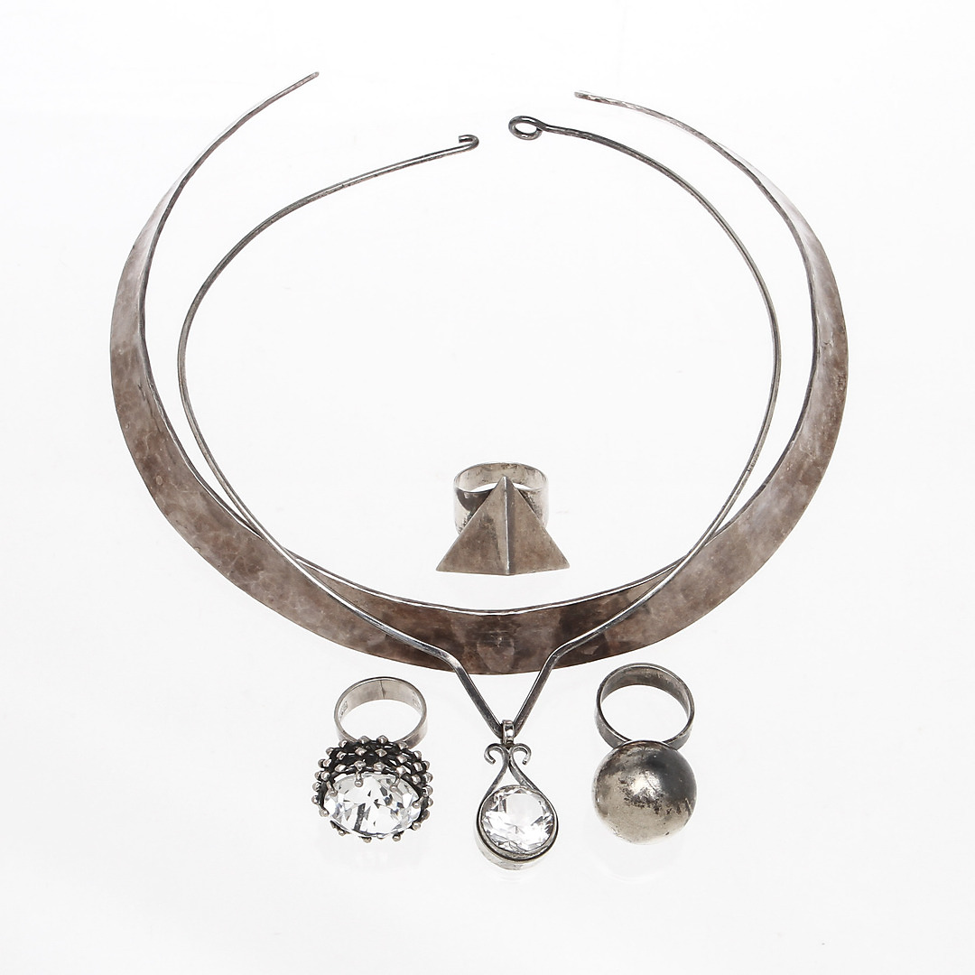 218873. HALSKÆDER, 2 stk og RINGE, 3 stk, sølv.