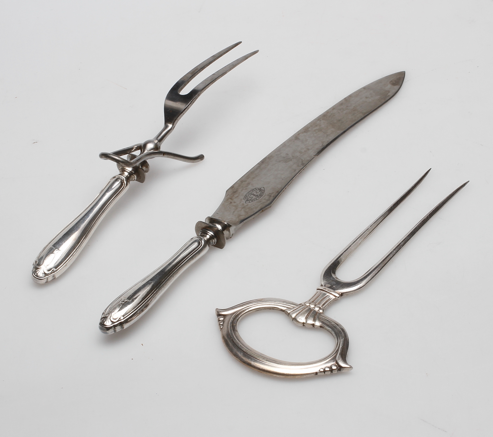 219366. JULESKINKE BESTIK, 3 dele, nysølv.