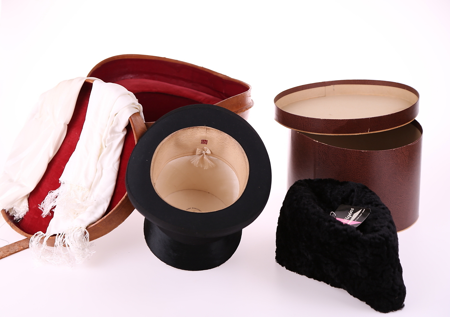 219486. HØJ HAT + pelshue + SILKETØRKÆRKER, 2 stk.