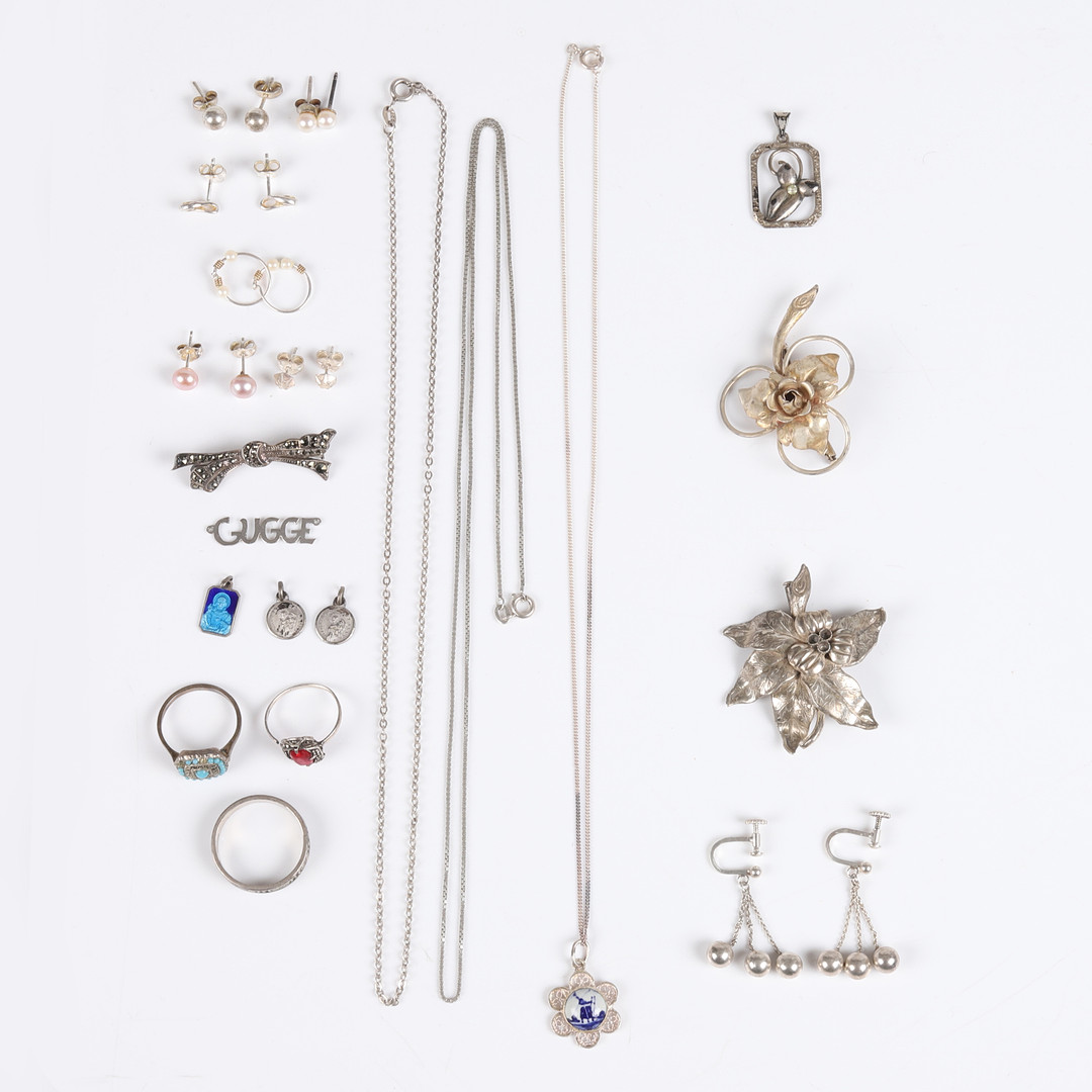 2207847. Sæt SMYKKER, Sølv, 21 stk.