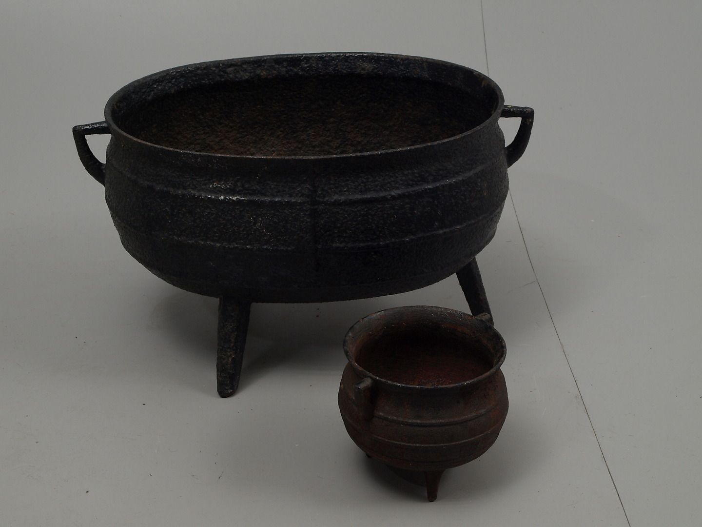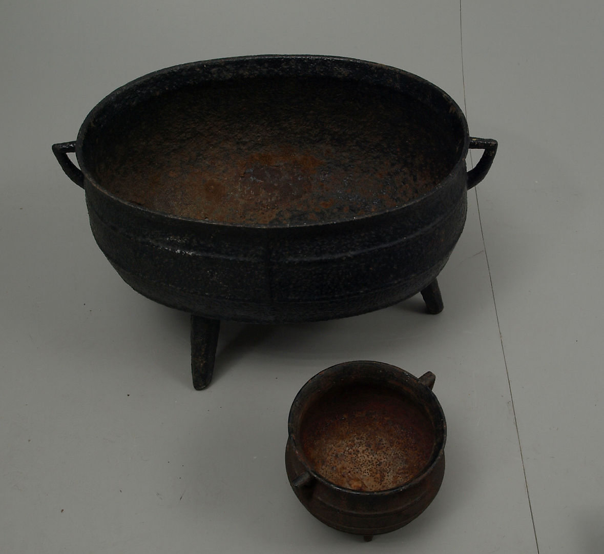 221124. STØBEJERNSGRYDER, 2 stk., 1800-1900 tallet.