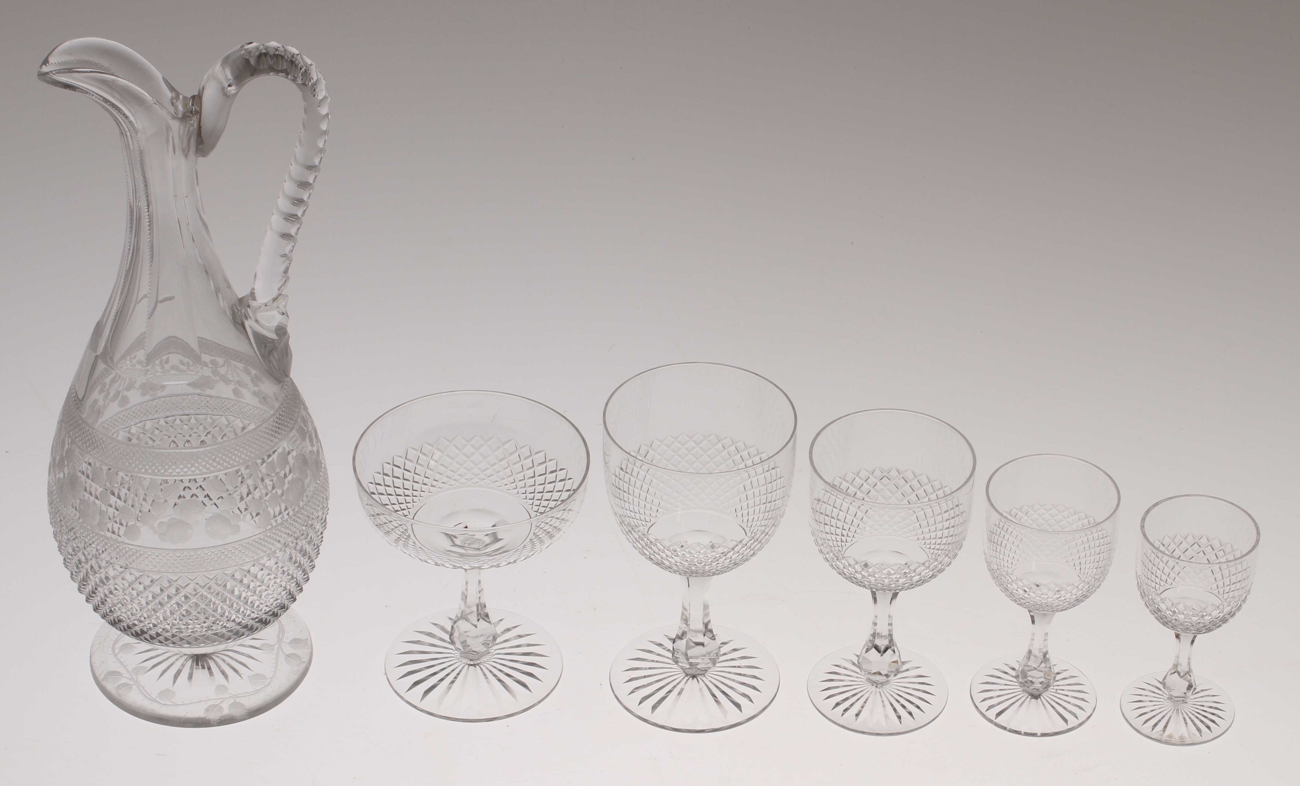 22145. GLASSERVICE, 41 dele, ternet dekor, 20. århundrede.