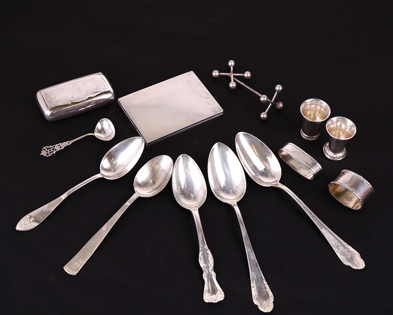 221595. SØLVVARER, 13 dele, vægt 555 gram.